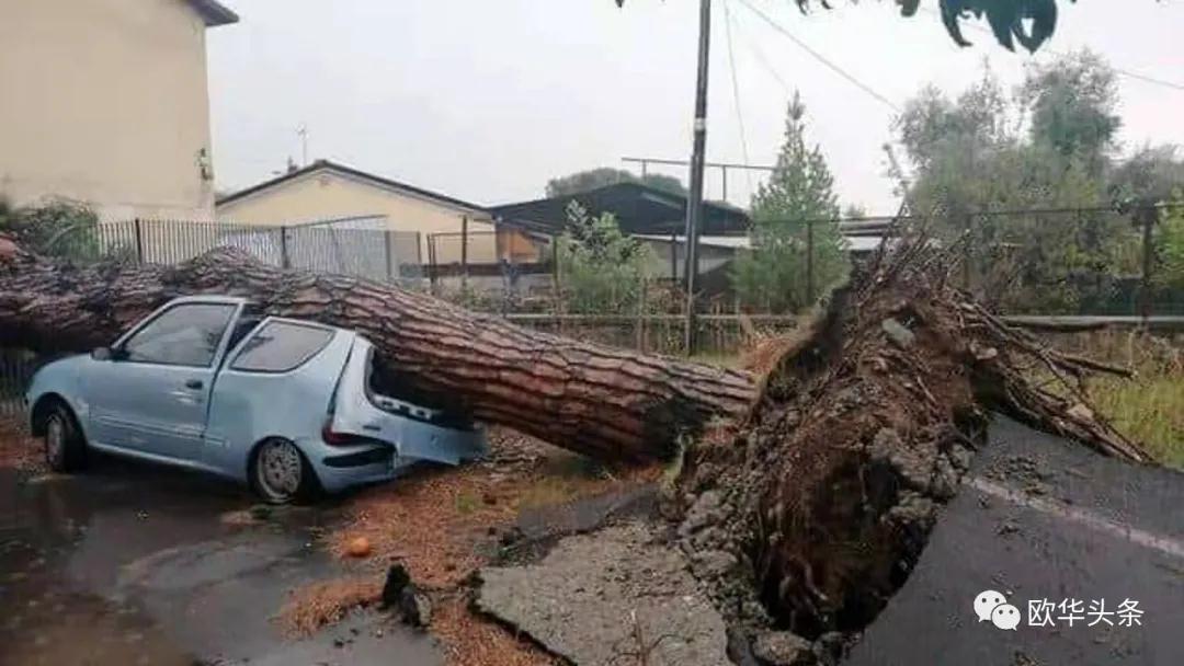 Europa广场也有问题,一些树枝被突如其来的风吹倒;民防小组正在介入,以切断和清除倒下的树枝。