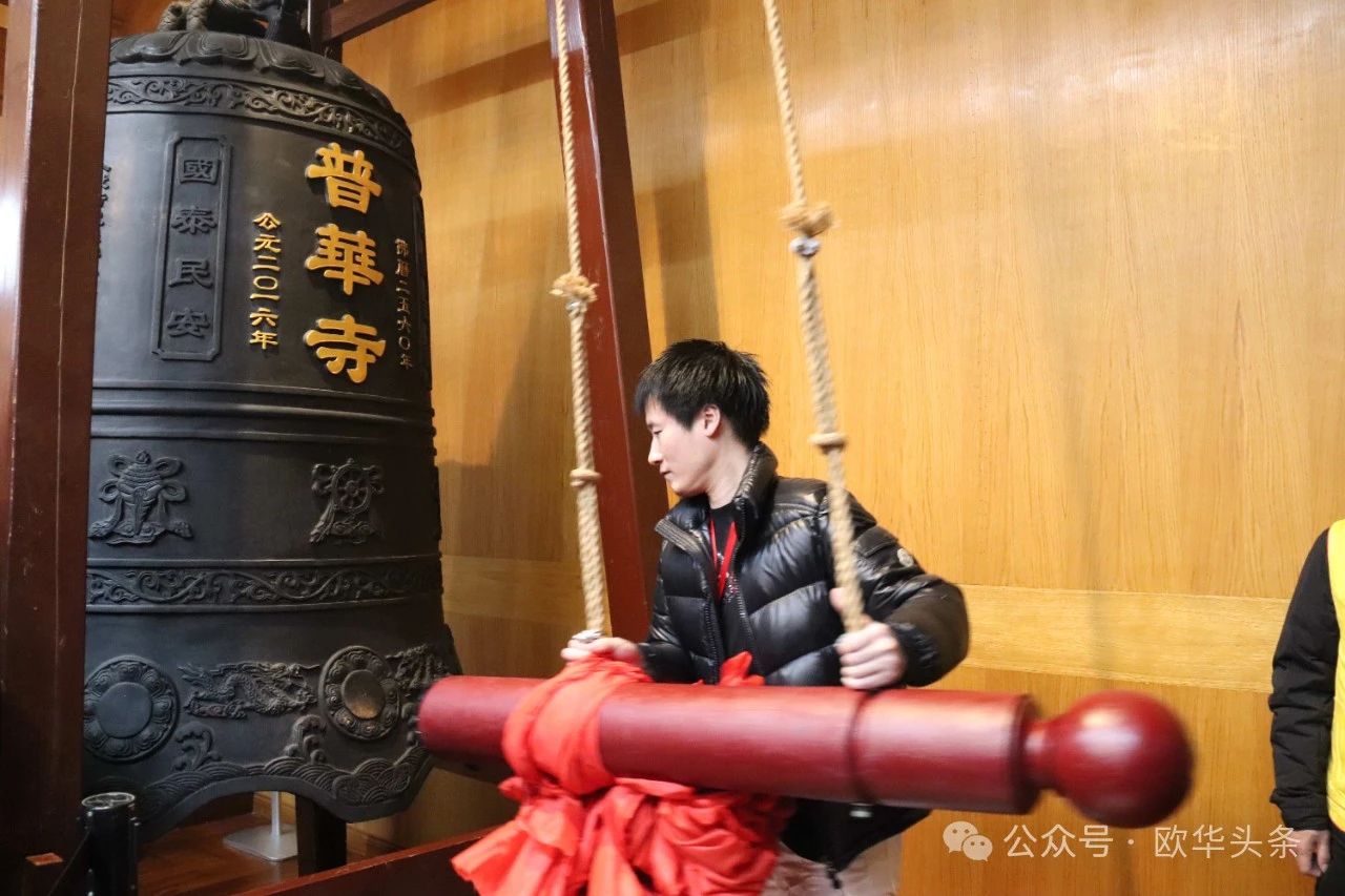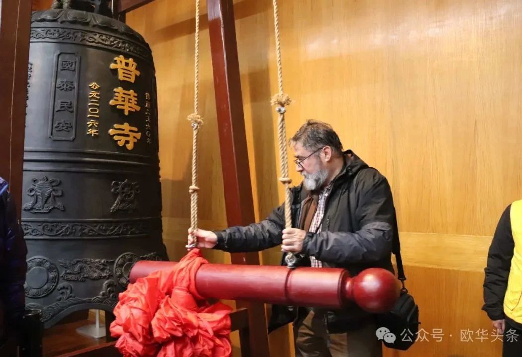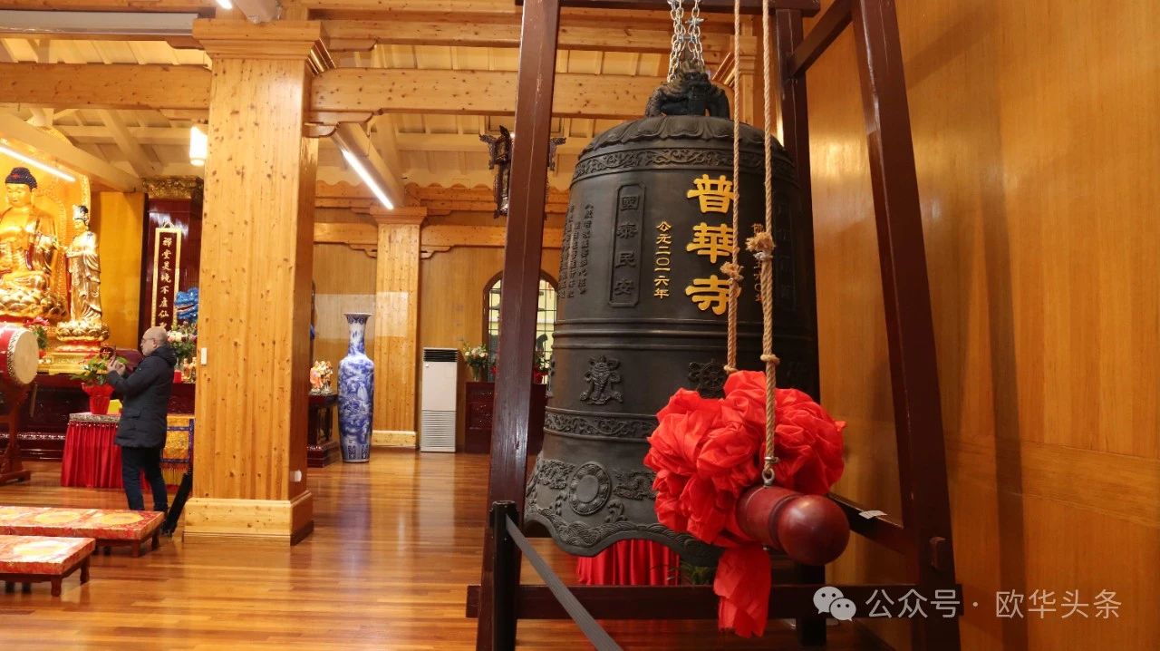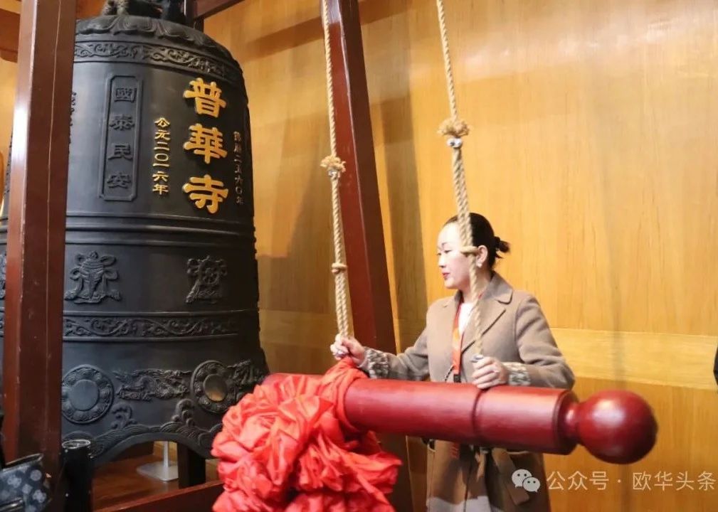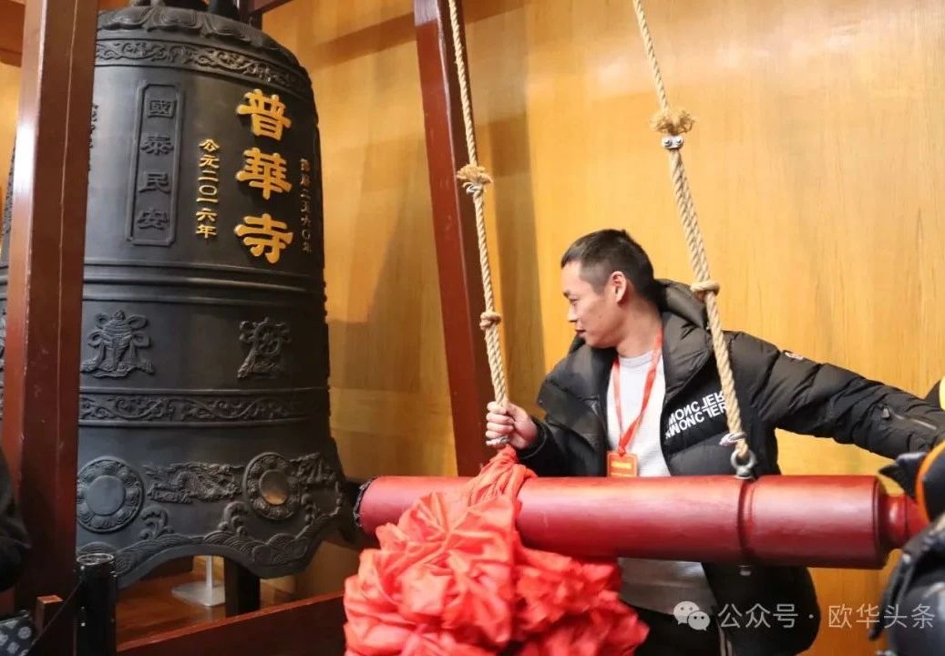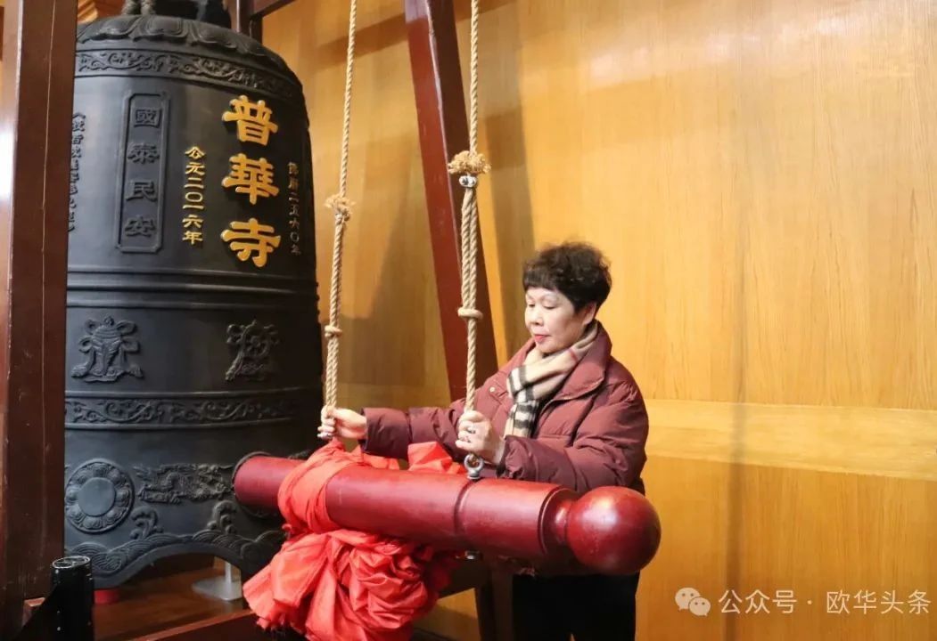 敲钟仪式上,庄严肃穆的氛围洋溢在整个场地,祈求大家在新的一年里平安健康、幸福快乐。在意大利华侨华人佛教总会会长黄树林敲响新年第一钟后,参与者们依次上前,用木槌敲击大钟,象征着敲响幸福、健康、吉祥的钟声,祈愿新的一年万事如意、平安顺利。每一声钟响都伴随着参与者们的祈愿与祝福,感受到浓浓的节日氛围和中华传统文化的底蕴。