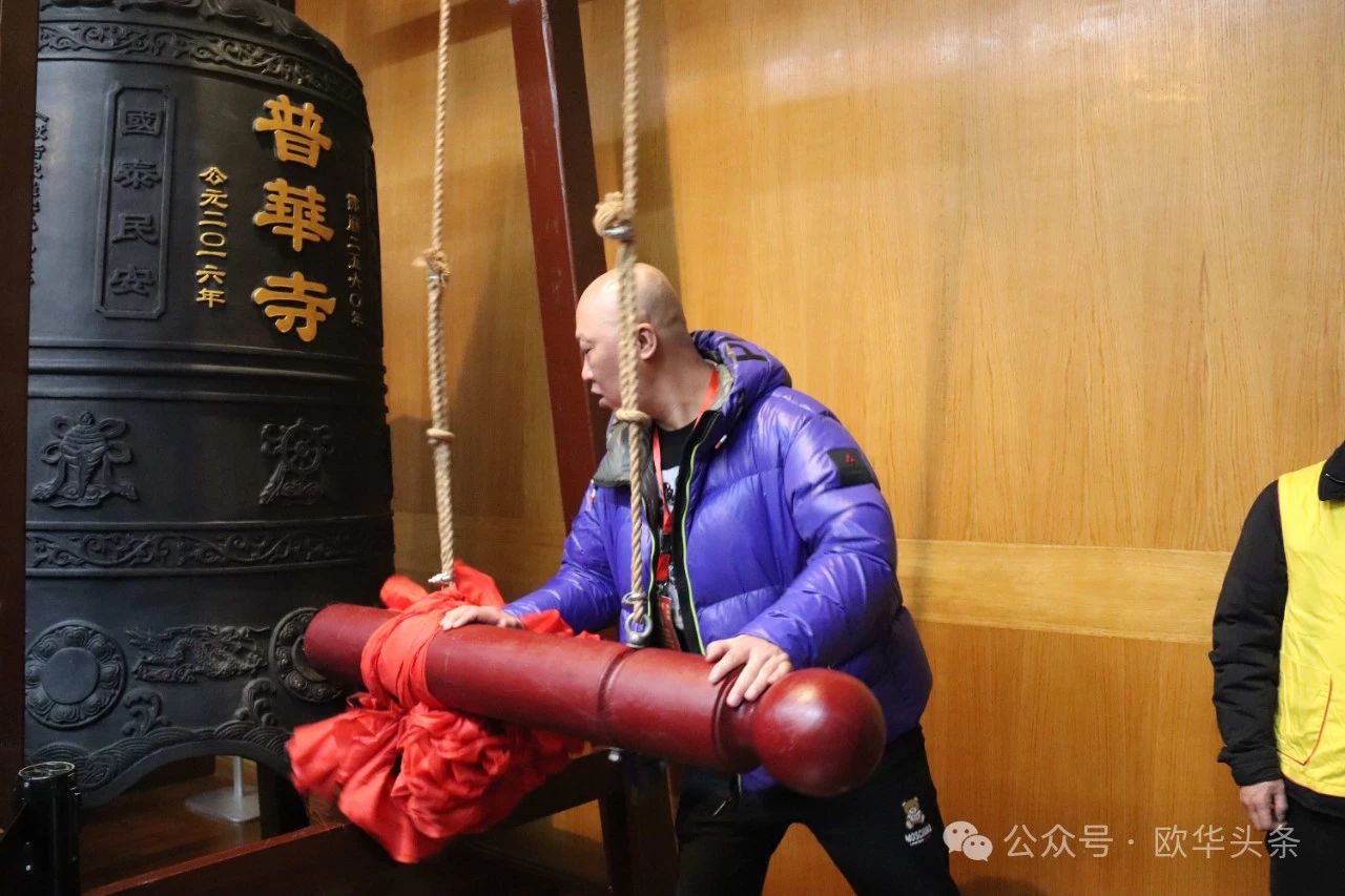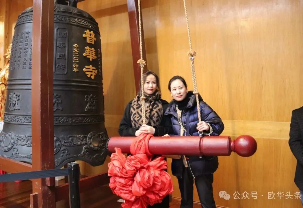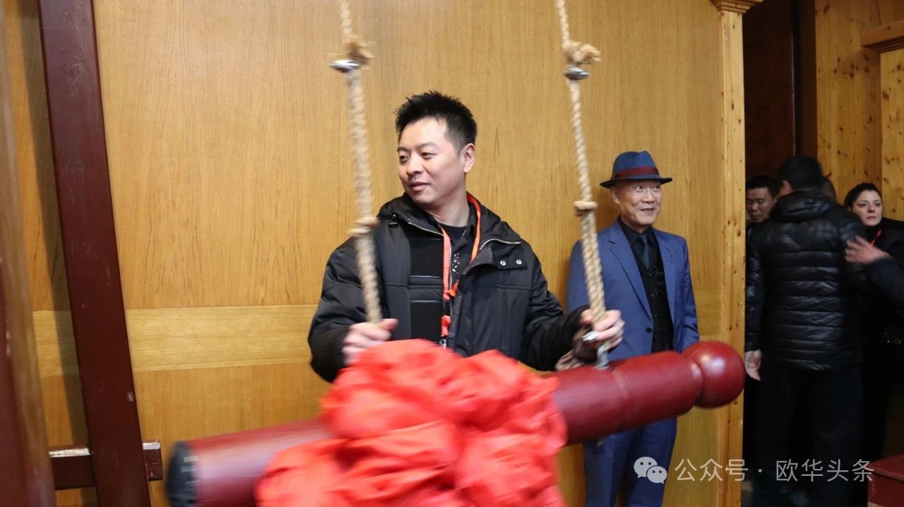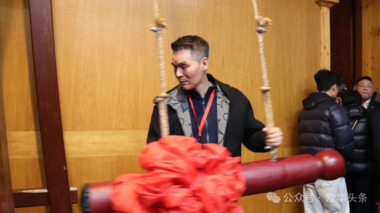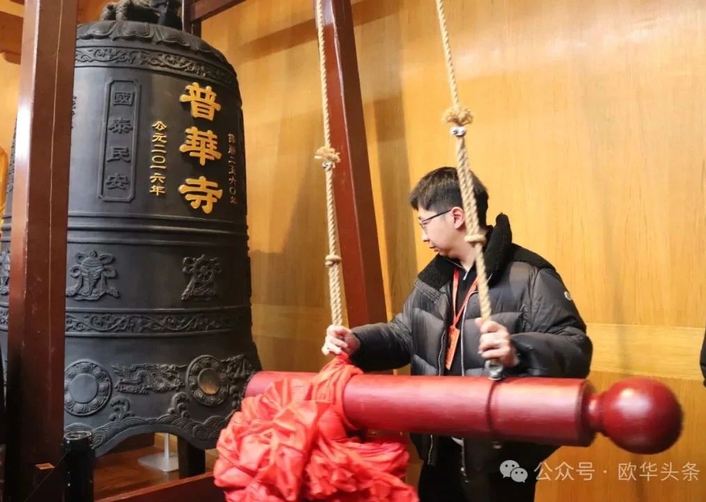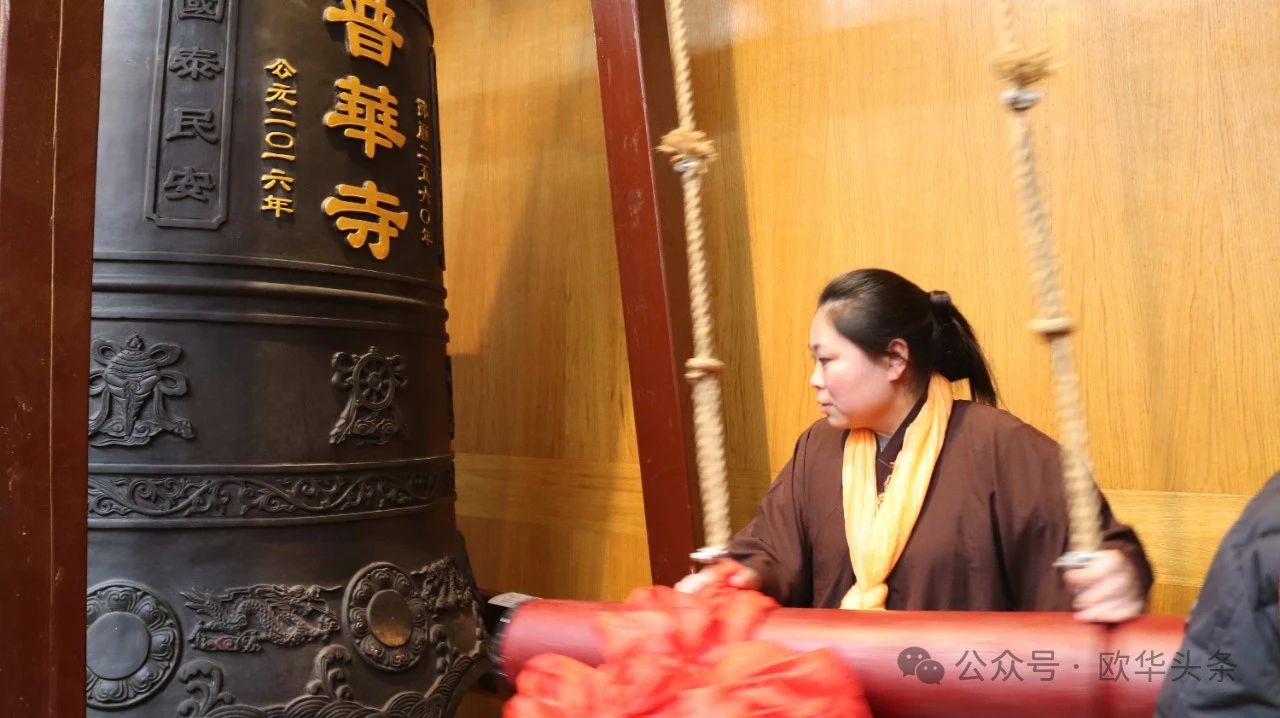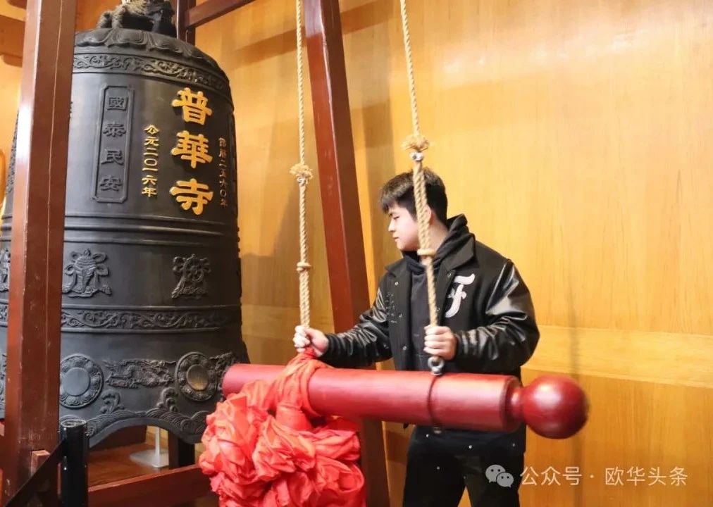 敲钟仪式上,庄严肃穆的氛围洋溢在整个场地,祈求大家在新的一年里平安健康、幸福快乐。在意大利华侨华人佛教总会会长黄树林敲响新年第一钟后,参与者们依次上前,用木槌敲击大钟,象征着敲响幸福、健康、吉祥的钟声,祈愿新的一年万事如意、平安顺利。每一声钟响都伴随着参与者们的祈愿与祝福,感受到浓浓的节日氛围和中华传统文化的底蕴。