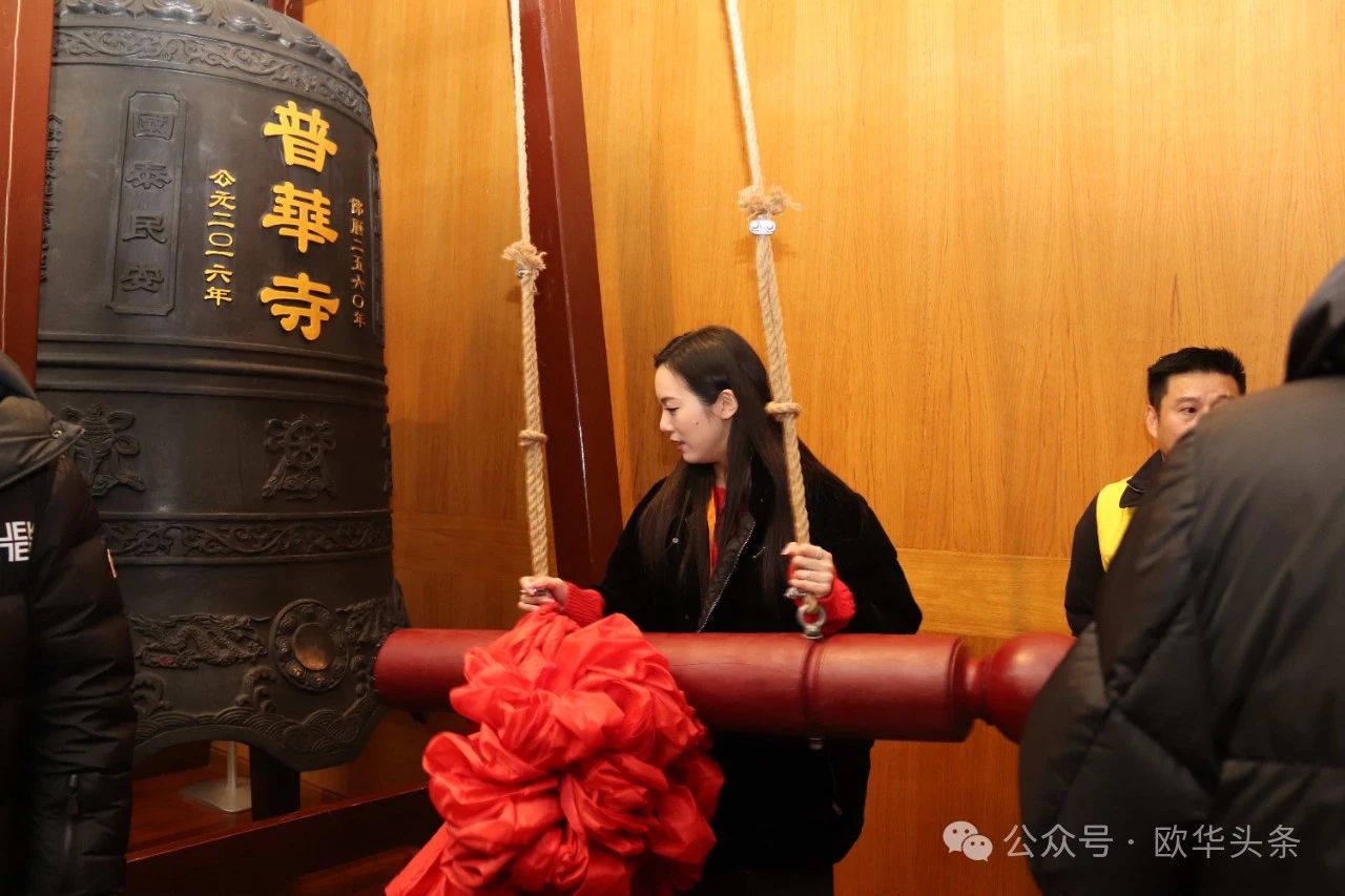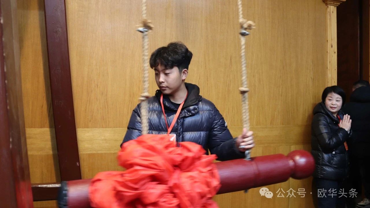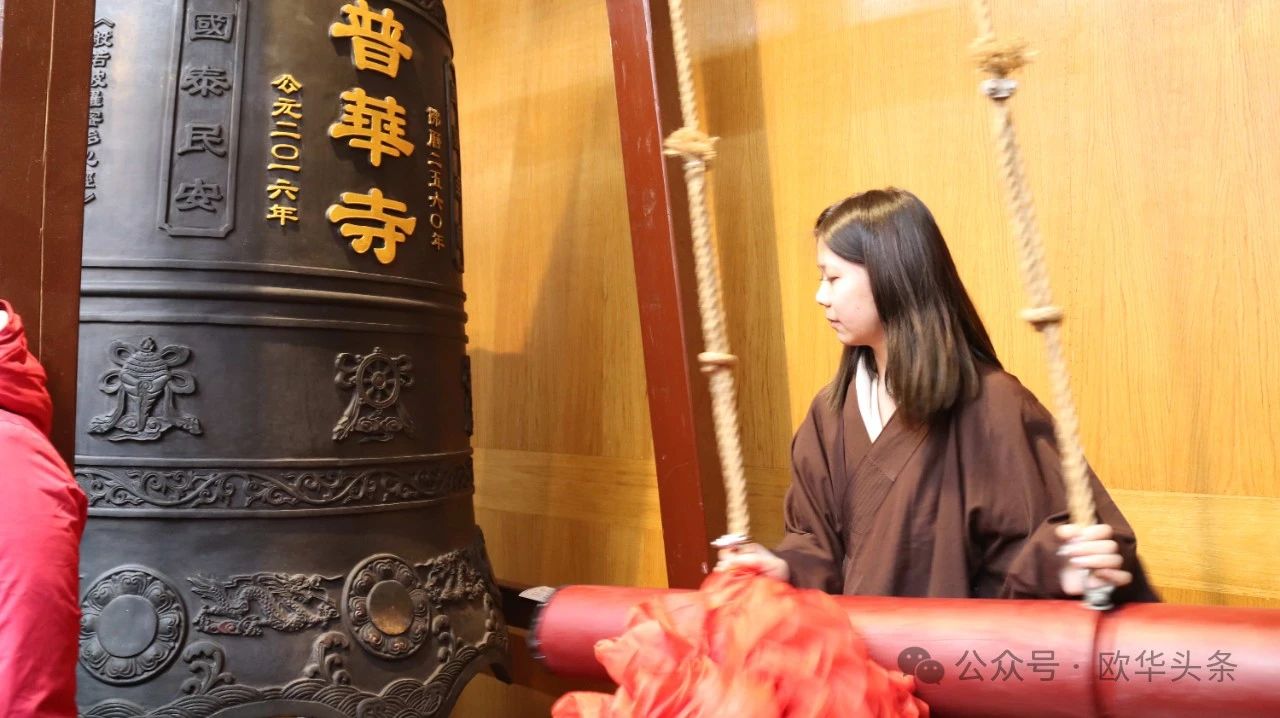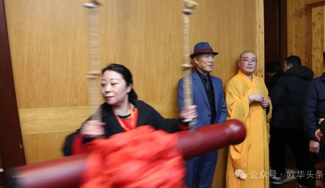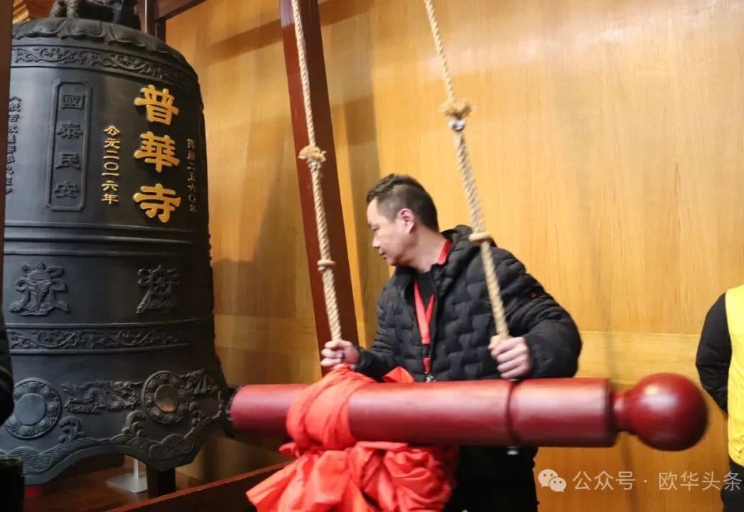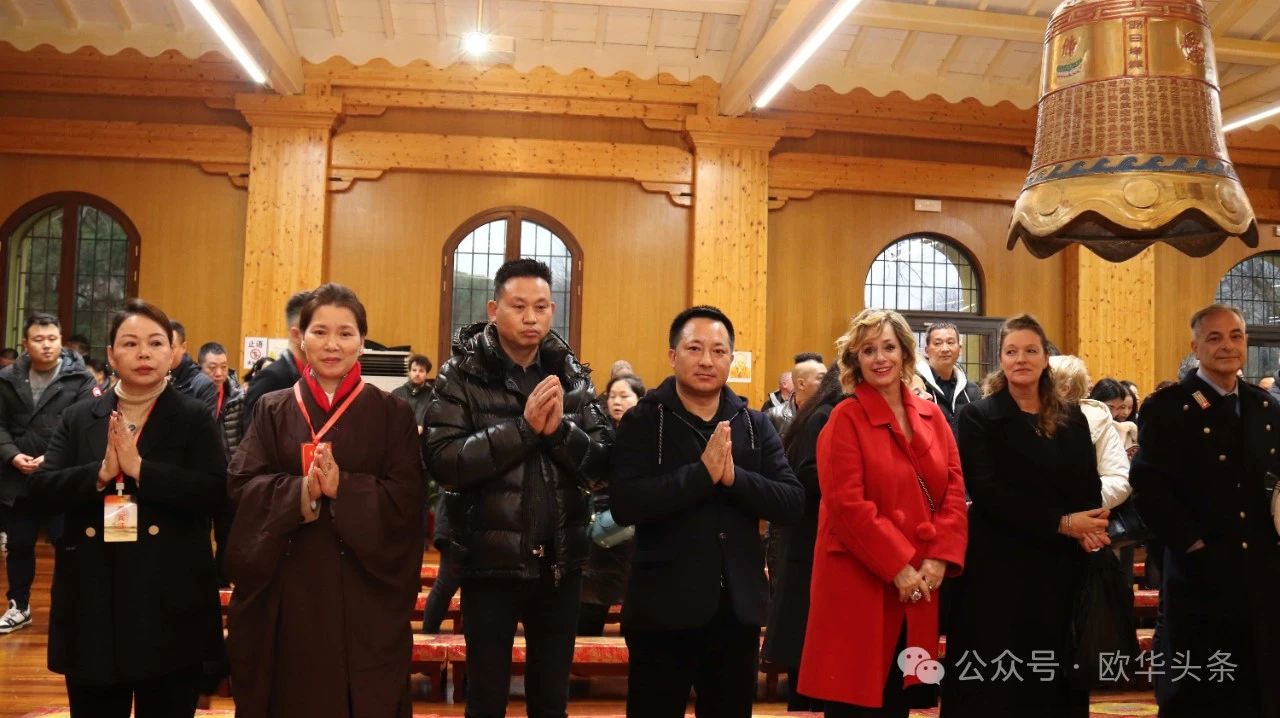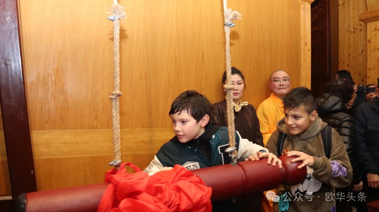 敲钟仪式上,庄严肃穆的氛围洋溢在整个场地,祈求大家在新的一年里平安健康、幸福快乐。在意大利华侨华人佛教总会会长黄树林敲响新年第一钟后,参与者们依次上前,用木槌敲击大钟,象征着敲响幸福、健康、吉祥的钟声,祈愿新的一年万事如意、平安顺利。每一声钟响都伴随着参与者们的祈愿与祝福,感受到浓浓的节日氛围和中华传统文化的底蕴。