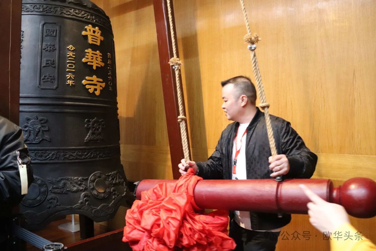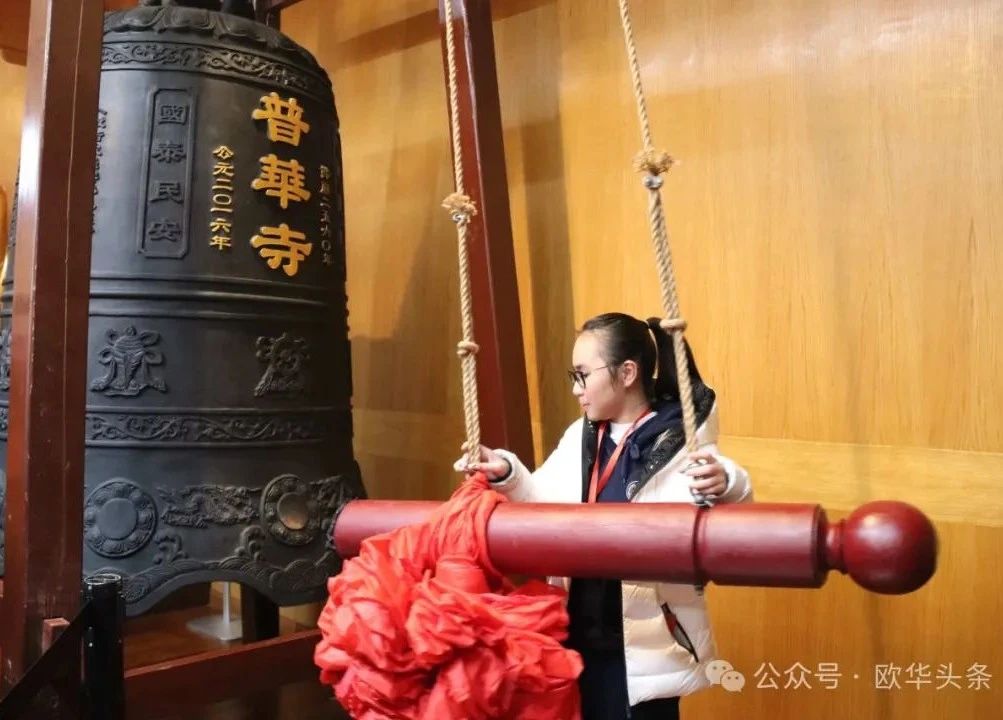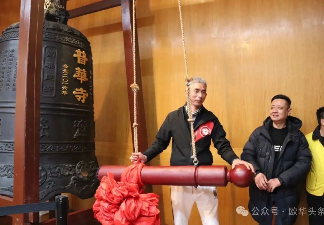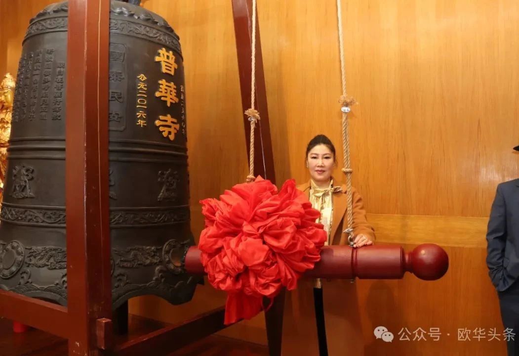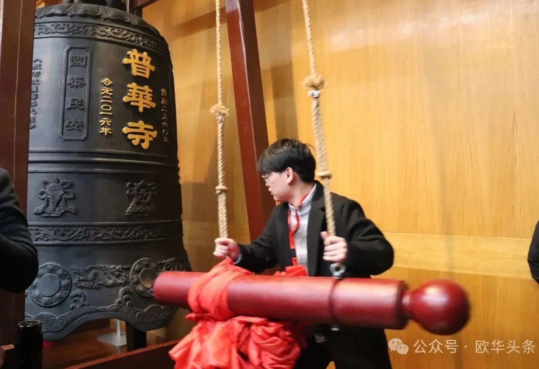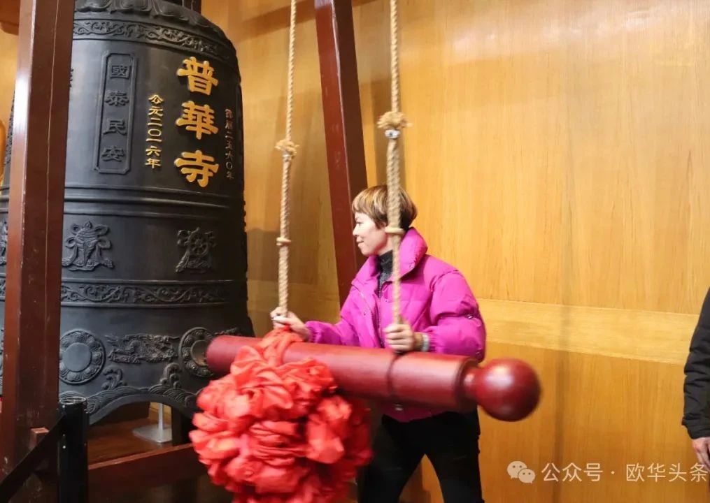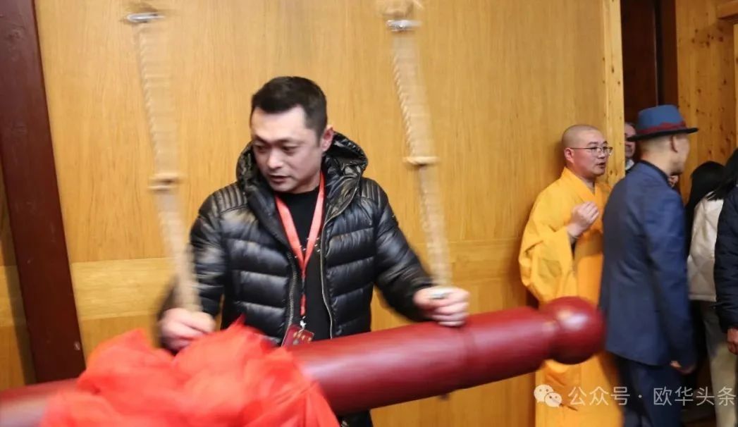 敲钟仪式上,庄严肃穆的氛围洋溢在整个场地,祈求大家在新的一年里平安健康、幸福快乐。在意大利华侨华人佛教总会会长黄树林敲响新年第一钟后,参与者们依次上前,用木槌敲击大钟,象征着敲响幸福、健康、吉祥的钟声,祈愿新的一年万事如意、平安顺利。每一声钟响都伴随着参与者们的祈愿与祝福,感受到浓浓的节日氛围和中华传统文化的底蕴。