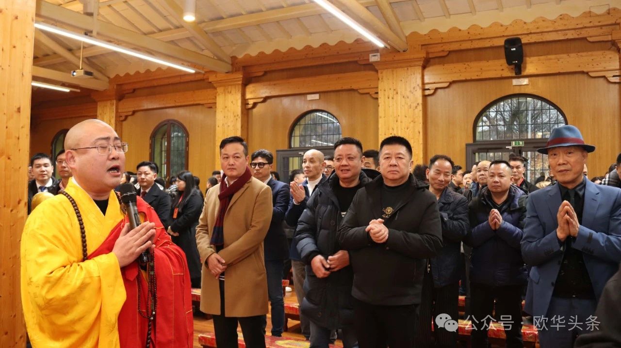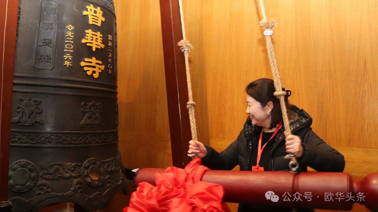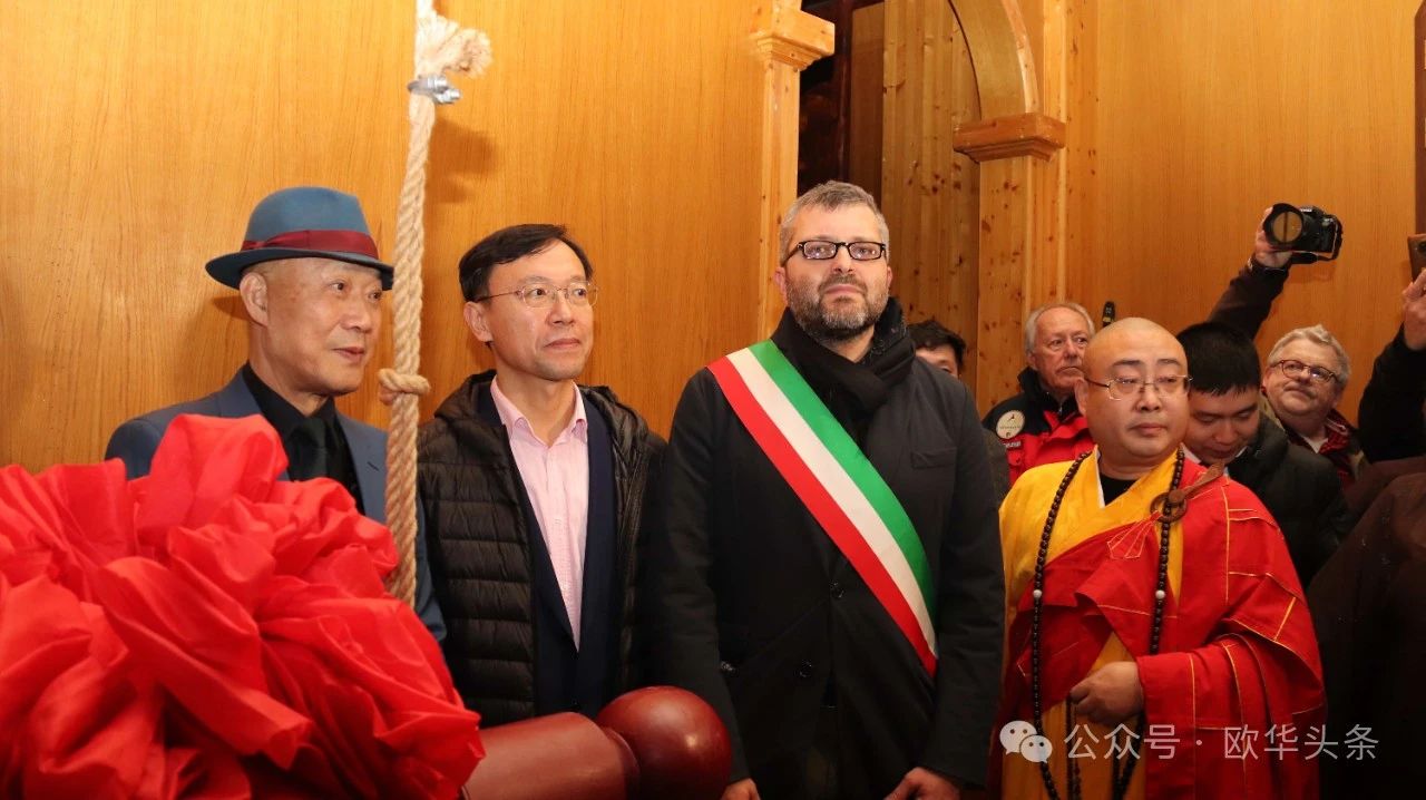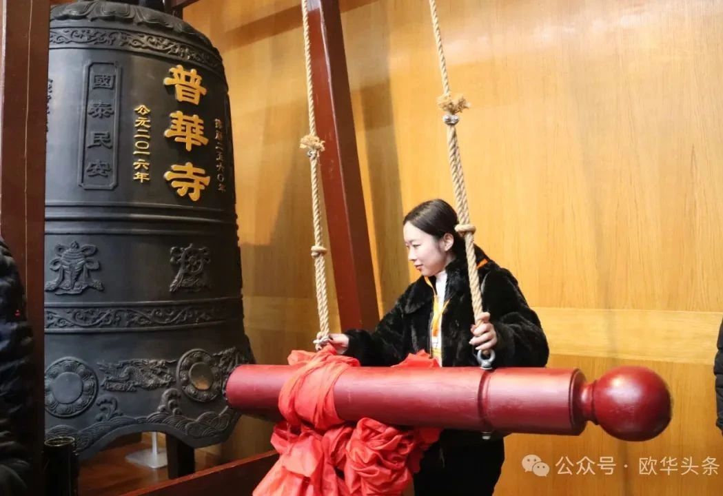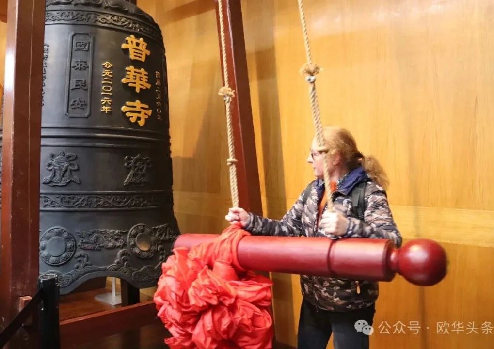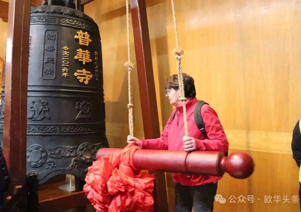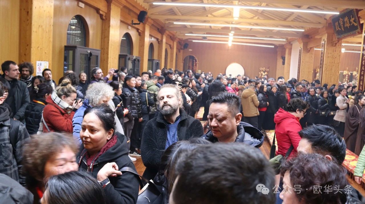 敲钟仪式上,庄严肃穆的氛围洋溢在整个场地,祈求大家在新的一年里平安健康、幸福快乐。在意大利华侨华人佛教总会会长黄树林敲响新年第一钟后,参与者们依次上前,用木槌敲击大钟,象征着敲响幸福、健康、吉祥的钟声,祈愿新的一年万事如意、平安顺利。每一声钟响都伴随着参与者们的祈愿与祝福,感受到浓浓的节日氛围和中华传统文化的底蕴。