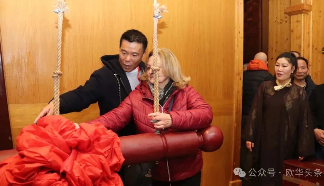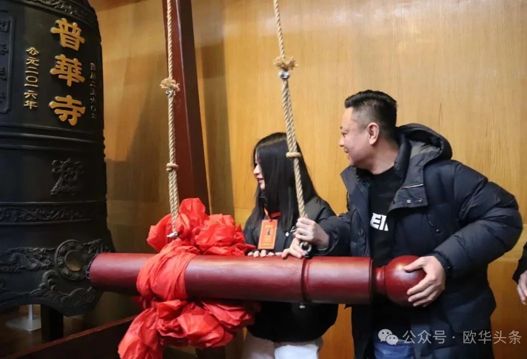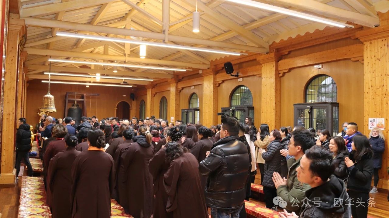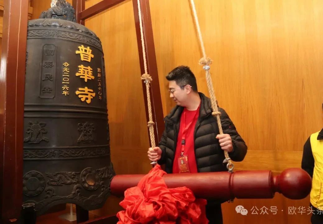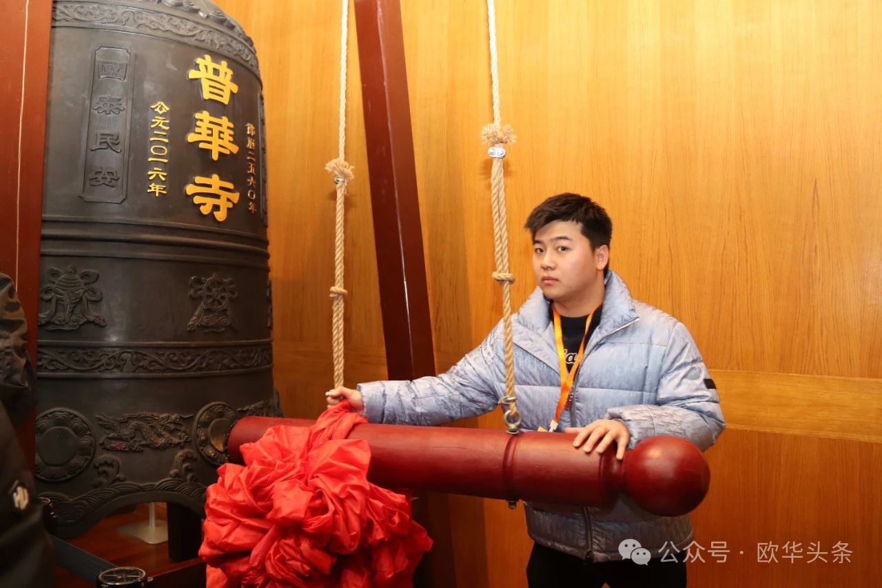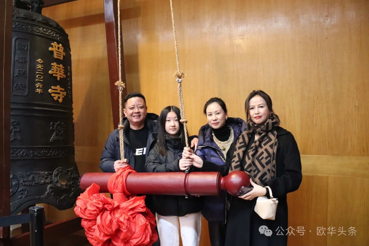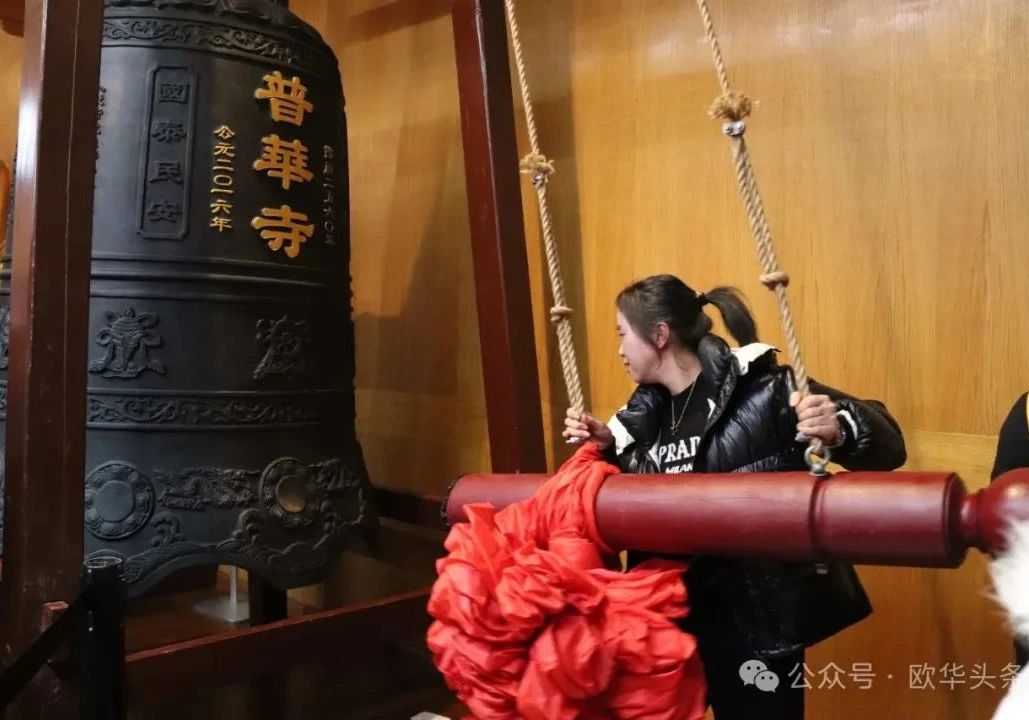 敲钟仪式上,庄严肃穆的氛围洋溢在整个场地,祈求大家在新的一年里平安健康、幸福快乐。在意大利华侨华人佛教总会会长黄树林敲响新年第一钟后,参与者们依次上前,用木槌敲击大钟,象征着敲响幸福、健康、吉祥的钟声,祈愿新的一年万事如意、平安顺利。每一声钟响都伴随着参与者们的祈愿与祝福,感受到浓浓的节日氛围和中华传统文化的底蕴。