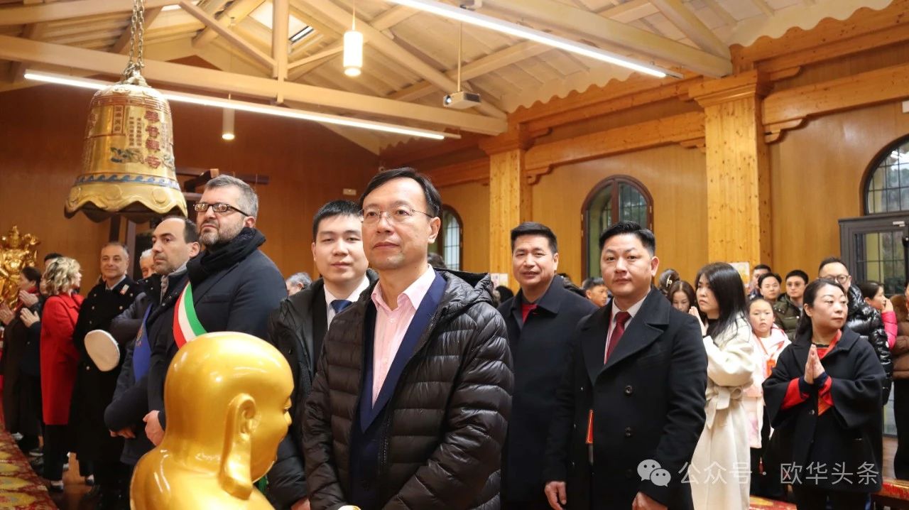 (欧华头条 陈静)2024年2月9日,正值除夕之际,意大利普拉托普华寺迎来了一场隆重的敲钟仪式。当地政要、华侨华人以及中意友人上千人齐聚一堂,共同参与这一盛大的传统活动。