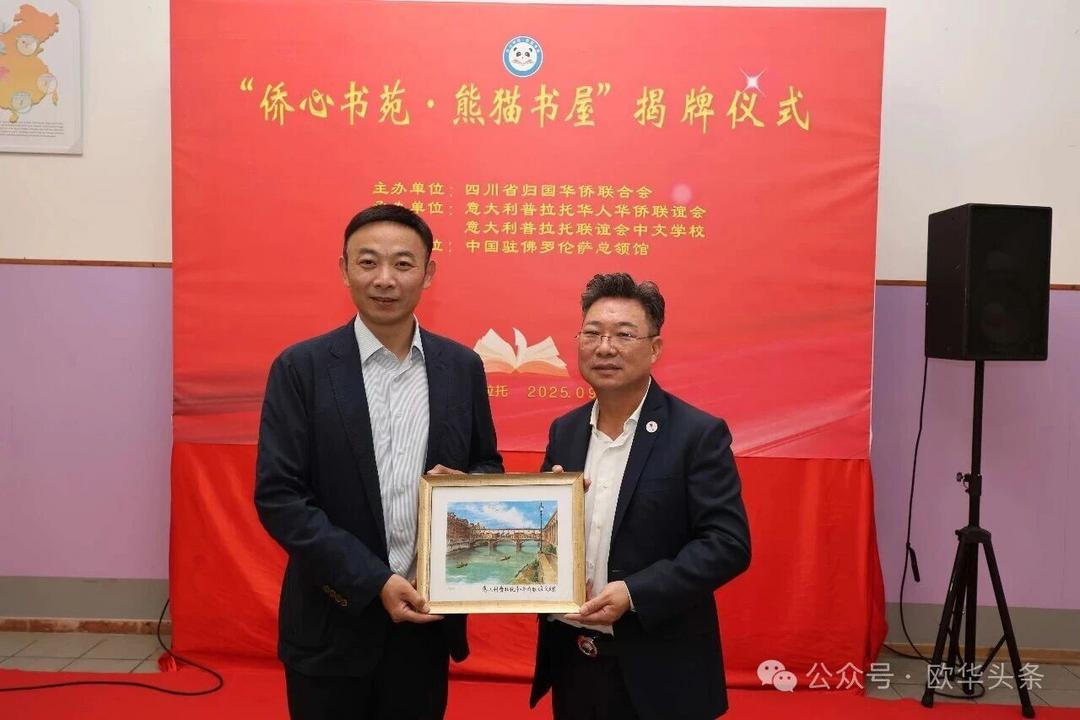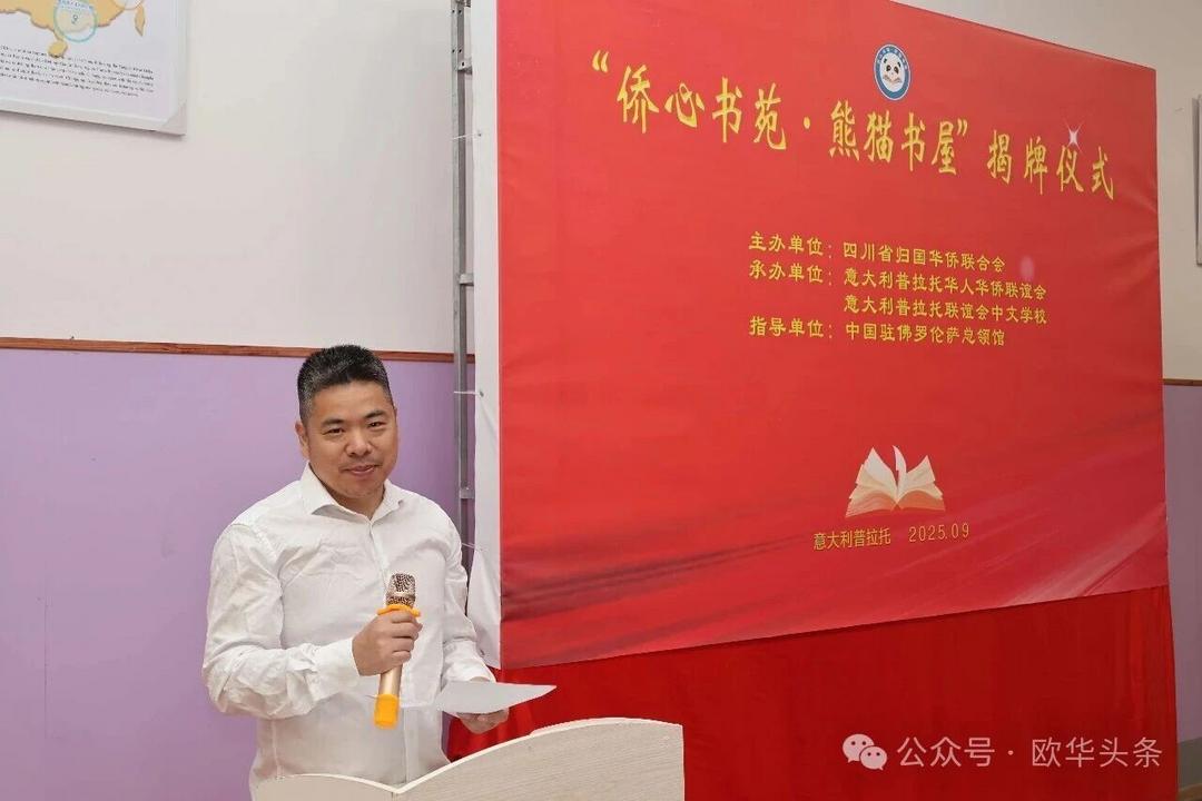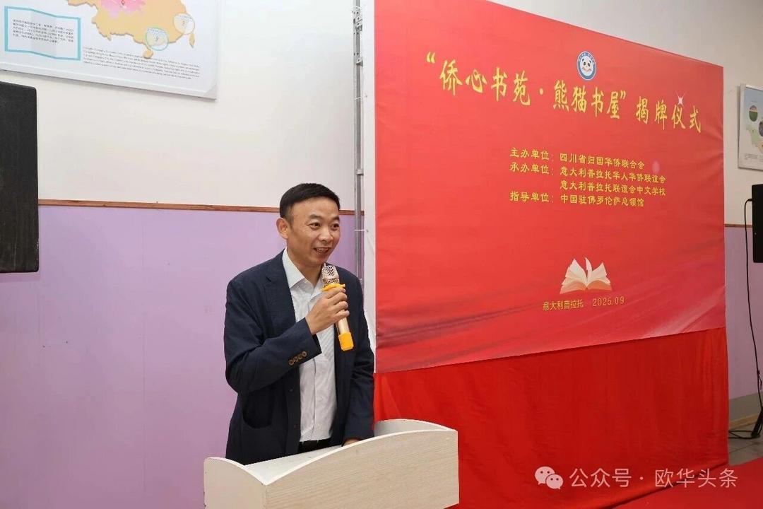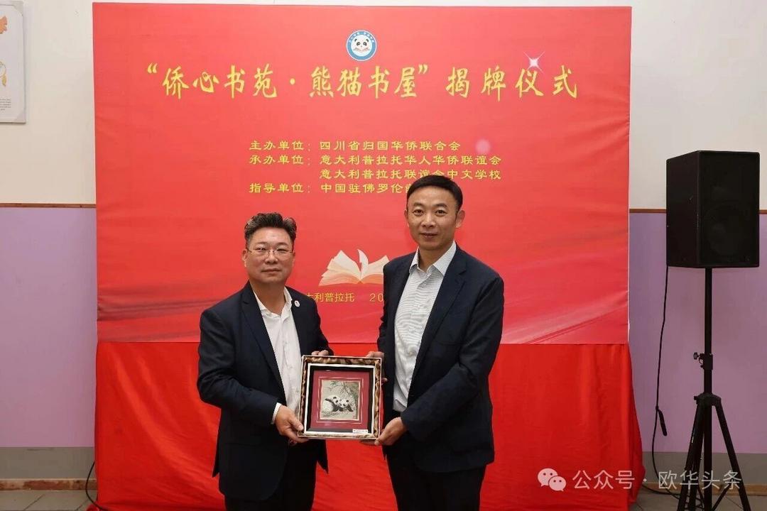 这一项目将成为孩子们汲取知识的乐园,更是连接家乡的重要纽带。此次揭牌,既是祖国家乡对海外侨胞的深切关怀,也是中意建交55周年之际一场富有意义的文化交流盛会。随着“侨心书苑·熊猫书屋”的落户,中华文化必将在普拉托生根发芽、代代传承。