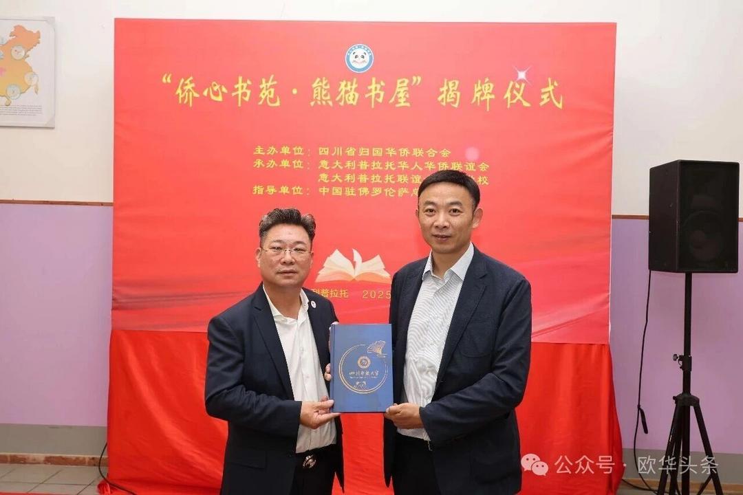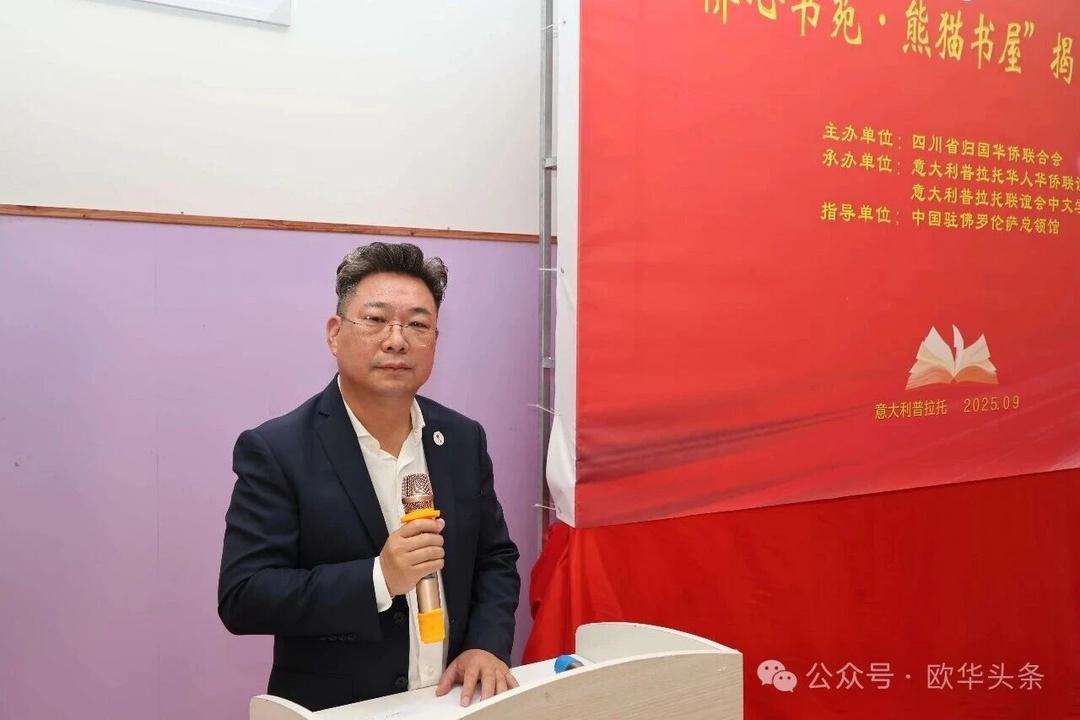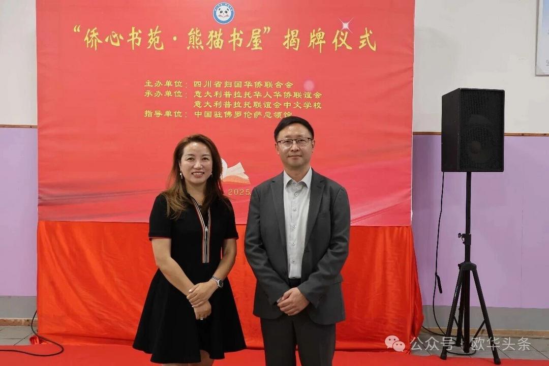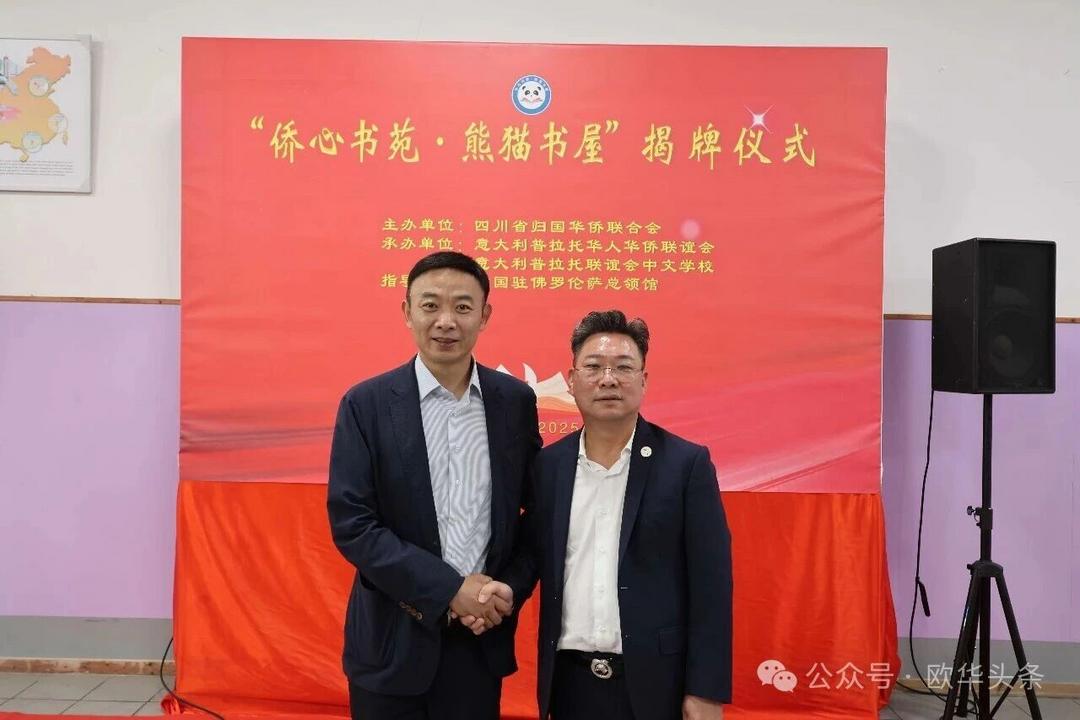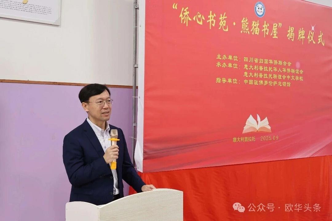 这一项目将成为孩子们汲取知识的乐园,更是连接家乡的重要纽带。此次揭牌,既是祖国家乡对海外侨胞的深切关怀,也是中意建交55周年之际一场富有意义的文化交流盛会。随着“侨心书苑·熊猫书屋”的落户,中华文化必将在普拉托生根发芽、代代传承。