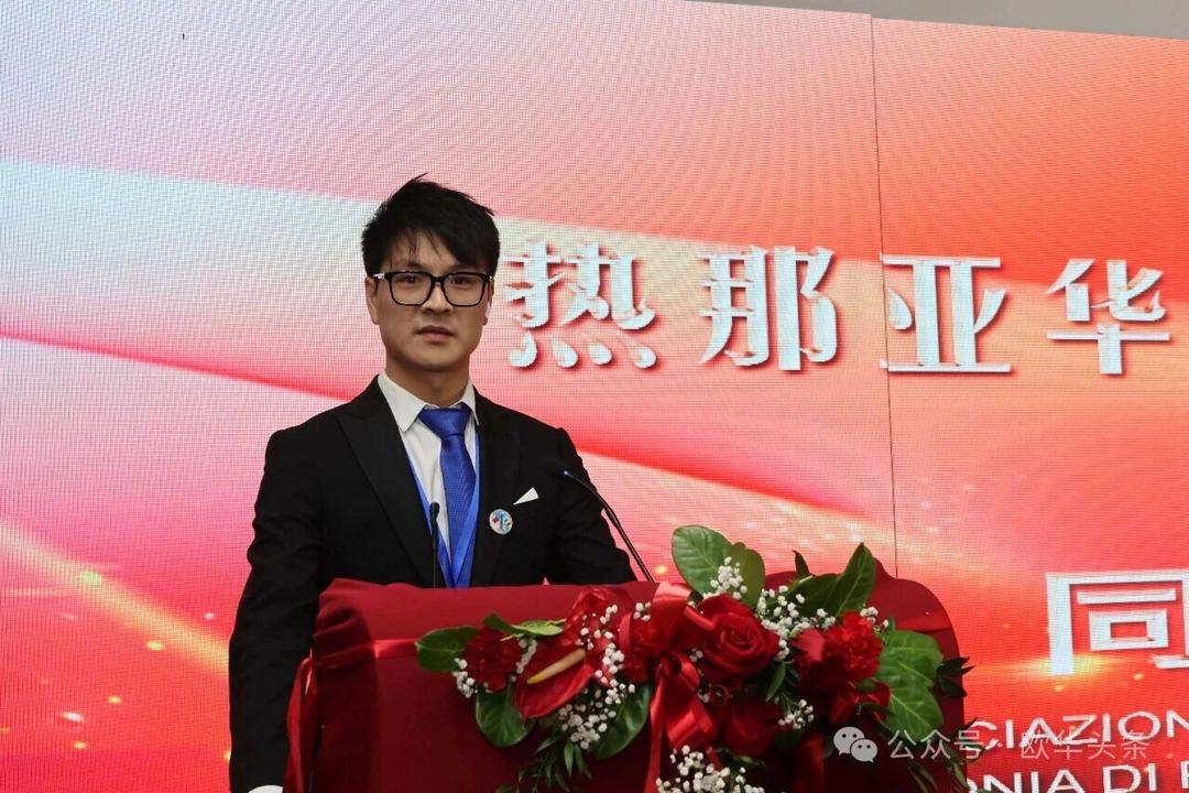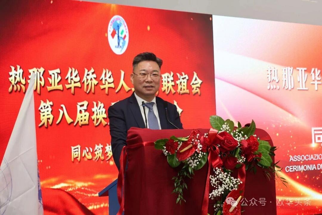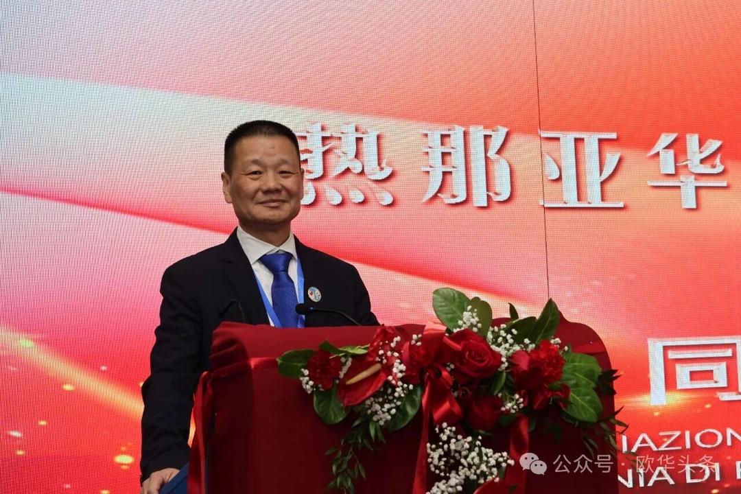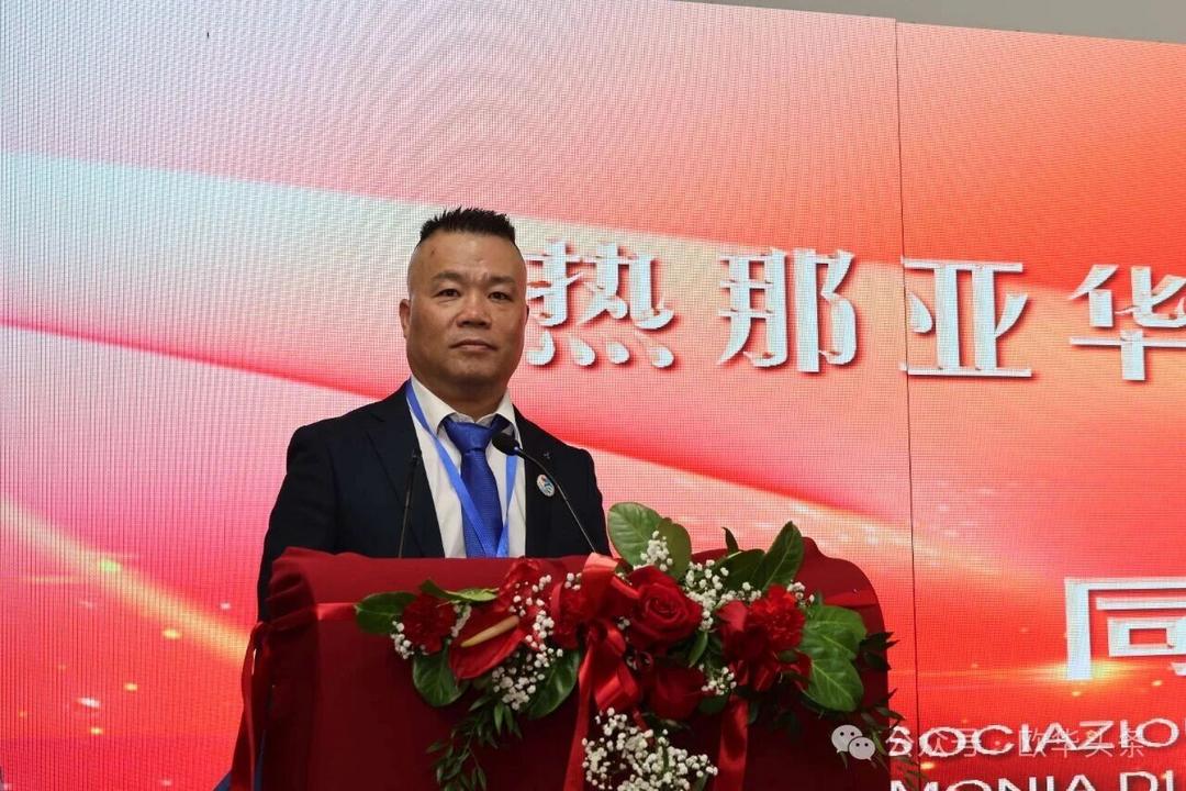 周莅淼主任代表尹琦总领事向热那亚工商联谊会成功换届大会表示热烈祝贺。他充分肯定了联谊会多年来在维护侨胞合法权益、促进中意经贸与人文交流、增进侨界团结、支持当地经济发展、弘扬中华文化以及推动中意民间友好等方面所作出的积极贡献。尤其是在疫情期间,联谊会展现出高度的责任感与凝聚力,令人深受感动与敬佩。