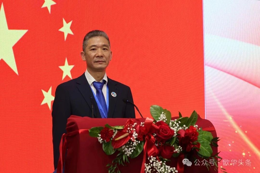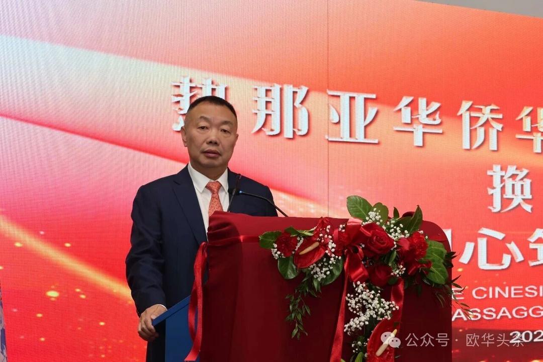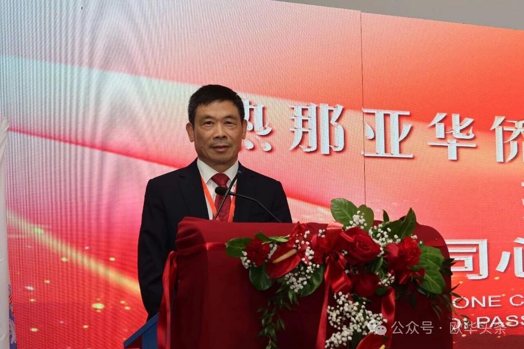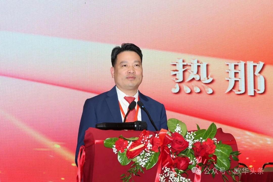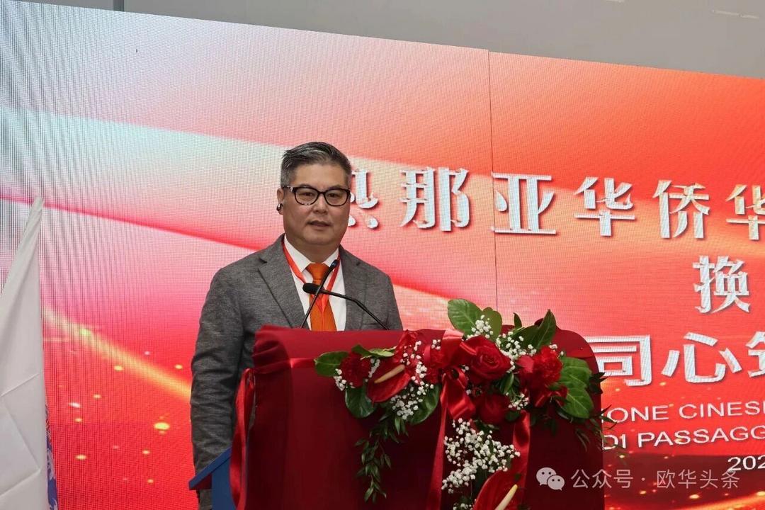 周莅淼主任代表尹琦总领事向热那亚工商联谊会成功换届大会表示热烈祝贺。他充分肯定了联谊会多年来在维护侨胞合法权益、促进中意经贸与人文交流、增进侨界团结、支持当地经济发展、弘扬中华文化以及推动中意民间友好等方面所作出的积极贡献。尤其是在疫情期间,联谊会展现出高度的责任感与凝聚力,令人深受感动与敬佩。