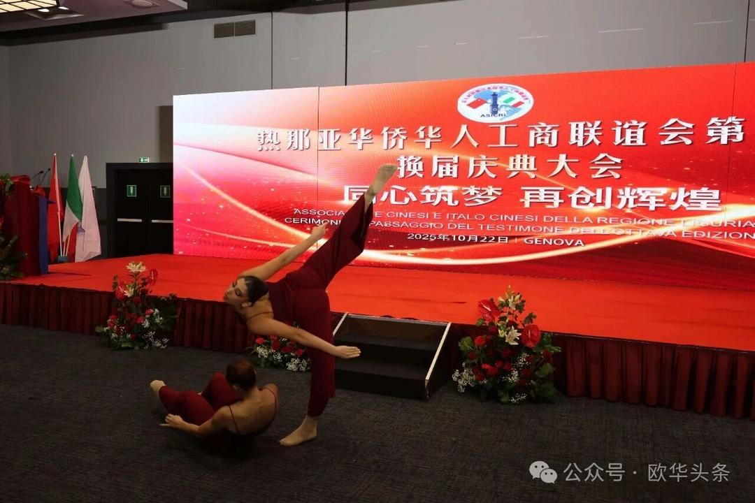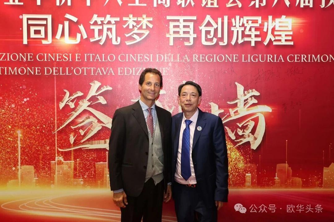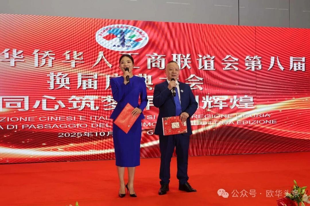 (欧华头条 陈静)2025年10月22日,意大利热那亚华侨华人工商联谊会第八届换届庆典在美丽的港口城市热那亚隆重举行。来自中意两国政界、侨界、工商界的嘉宾及社会各界代表400多人齐聚一堂,共同见证热那亚侨界这一具有里程碑意义的盛会。中国驻佛罗伦萨总领事馆领侨处主任周莅淼、利古里亚大区主席、热那亚市政府市长代表、意大利青年企业家联盟主席、温州市侨联副主席董邦云百忙之中出席此次盛会并致辞。