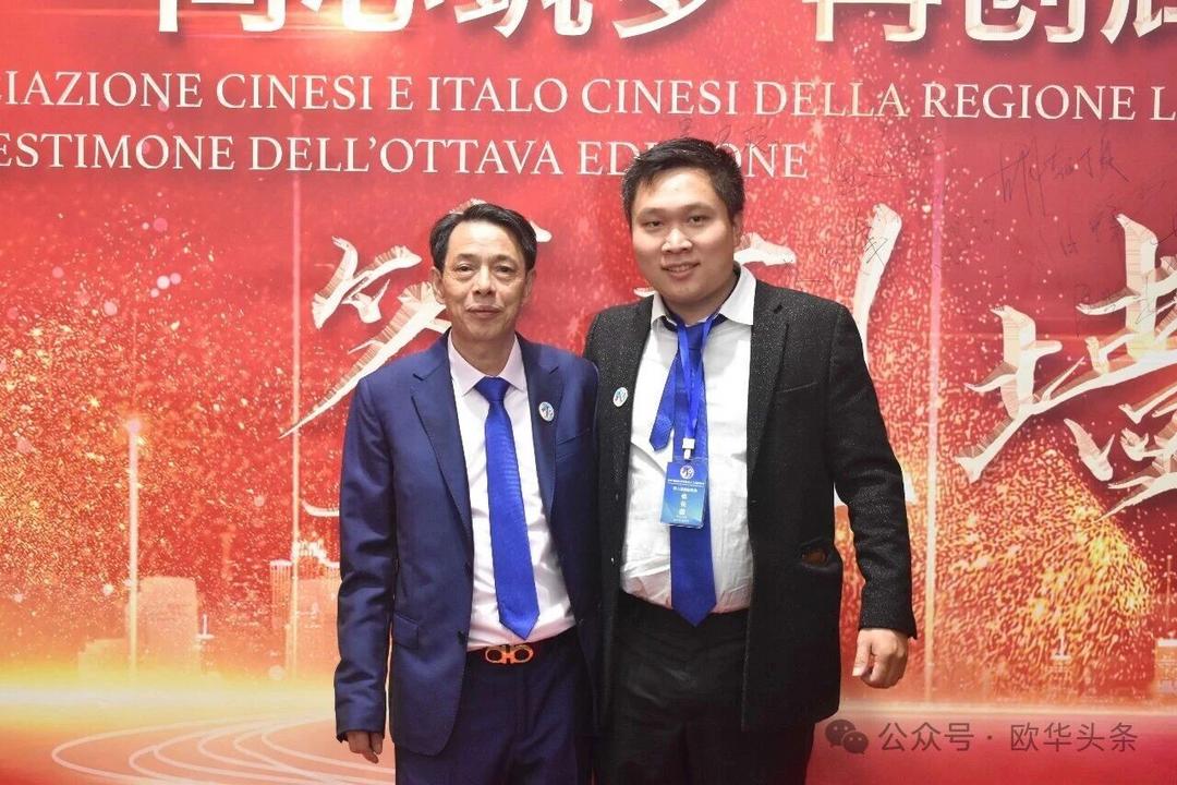 ▲周末与热那亚华侨华人工商联谊会执行会长吴良聪共同主持当天的盛会。