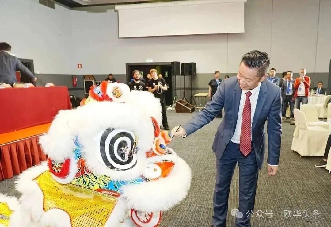 在热烈喜庆的氛围中,隆重的庆典仪式在激昂的舞狮表演中正式拉开帷幕。中国驻佛罗伦萨总领馆领侨处主任周莅淼与热那亚华侨华人工商联谊会会长胡志顶共同为狮子点睛,寓意新征程蓬勃开启、事业蒸蒸日上。随着鼓乐声起,祥狮腾跃,现场气氛热烈欢腾,洋溢着喜庆与祥和的节日氛围。