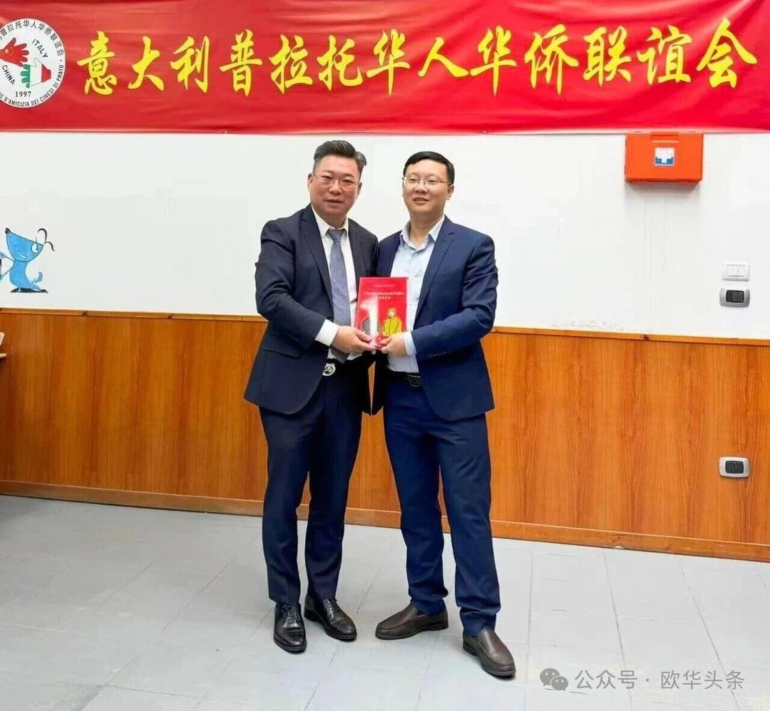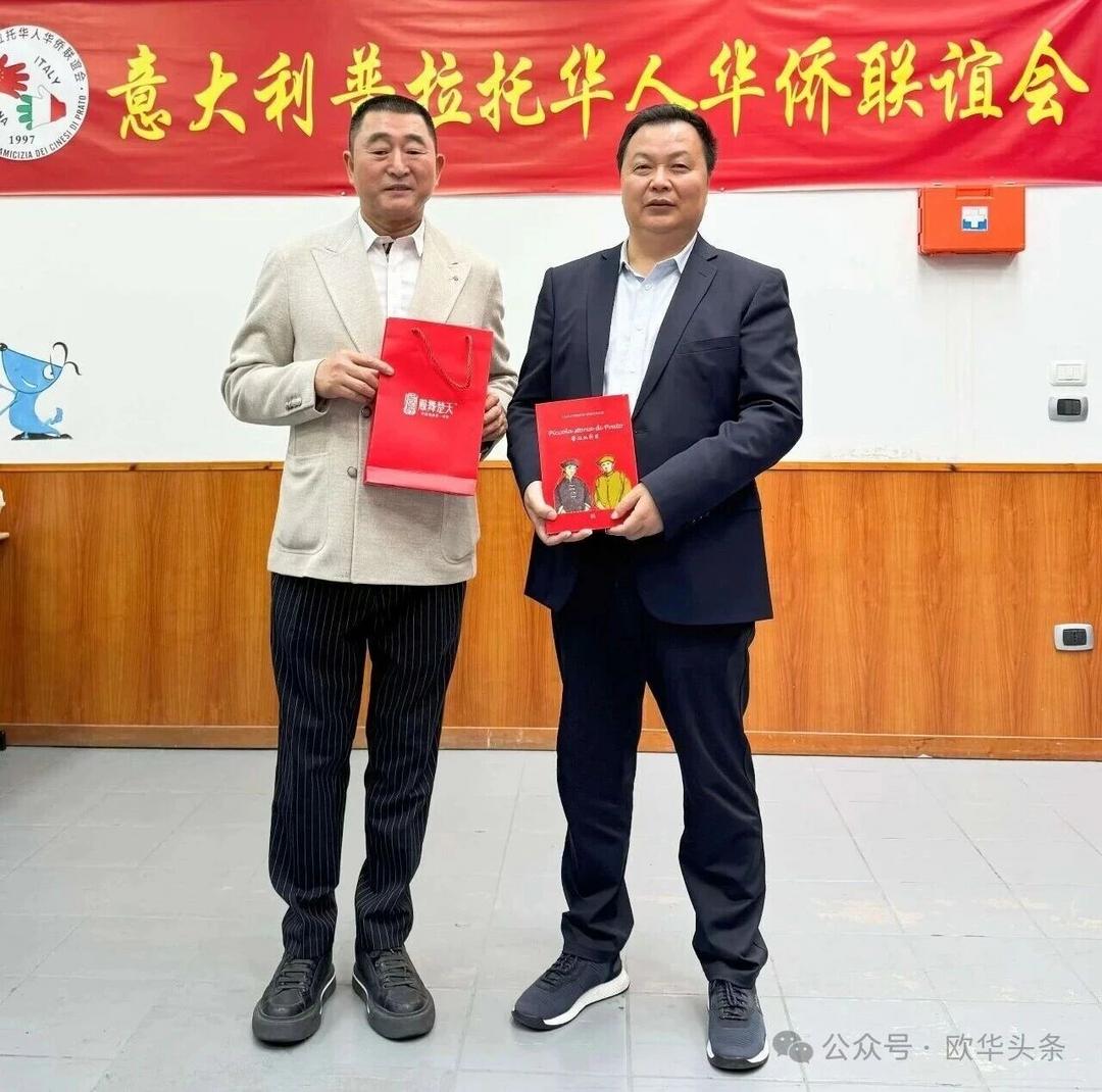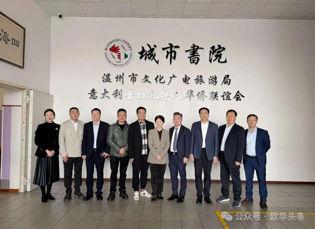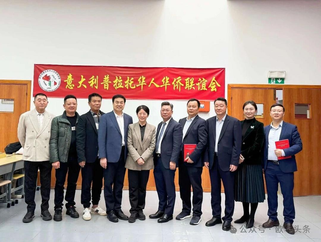 代表团一行受到意大利普拉托华人华侨联谊会会长黄晓龙、候任会长陈洲及理事会成员的热情接待。双方在友好、热烈的气氛中进行了交流座谈,就加强中意两地经贸合作、推动文化交流、服务海外侨胞等议题进行了深入探讨。