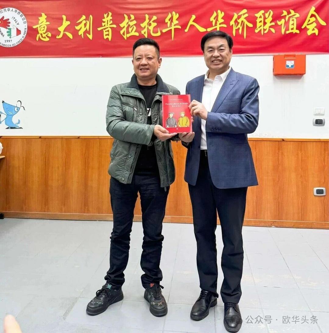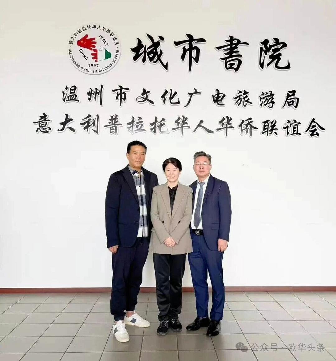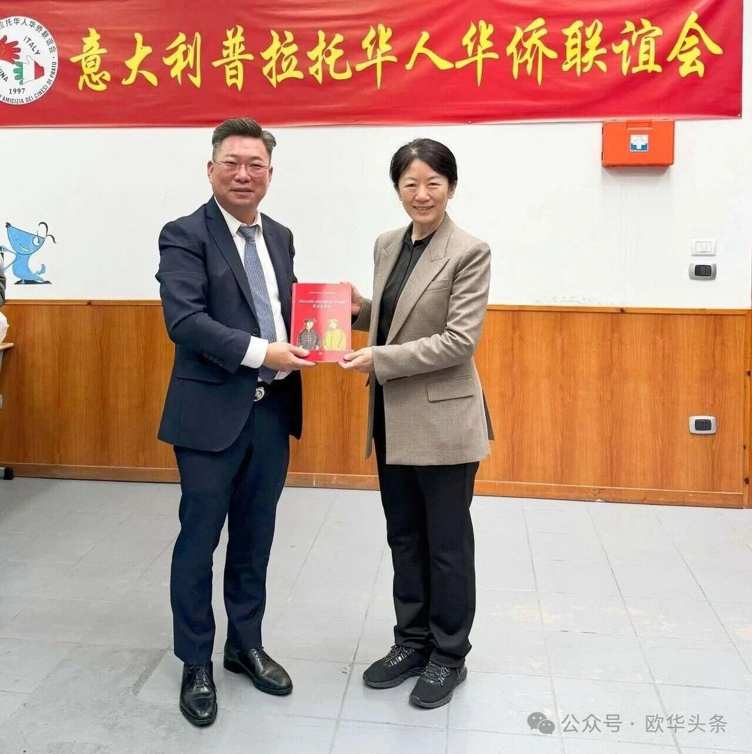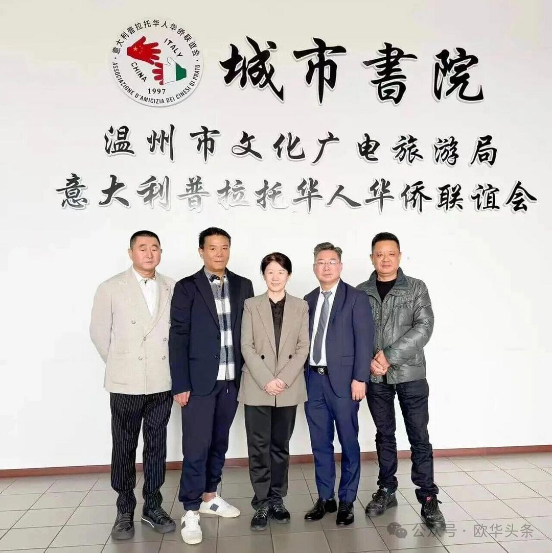 代表团一行受到意大利普拉托华人华侨联谊会会长黄晓龙、候任会长陈洲及理事会成员的热情接待。双方在友好、热烈的气氛中进行了交流座谈,就加强中意两地经贸合作、推动文化交流、服务海外侨胞等议题进行了深入探讨。