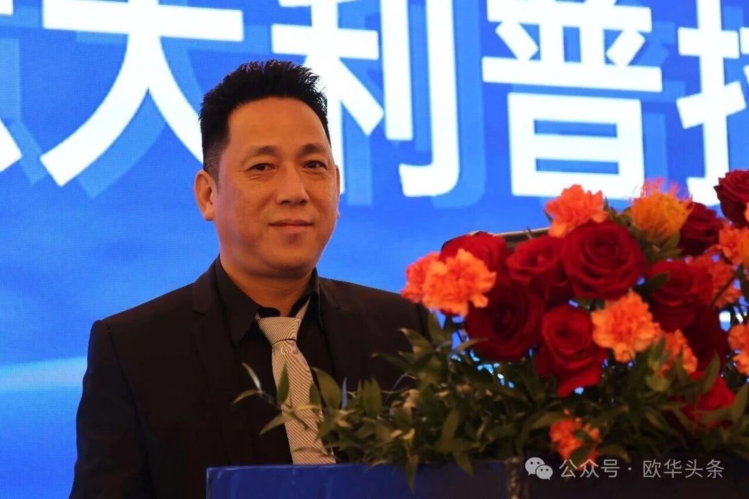 ▲罗马华侨华人联合总会会长程鹏发表讲话。