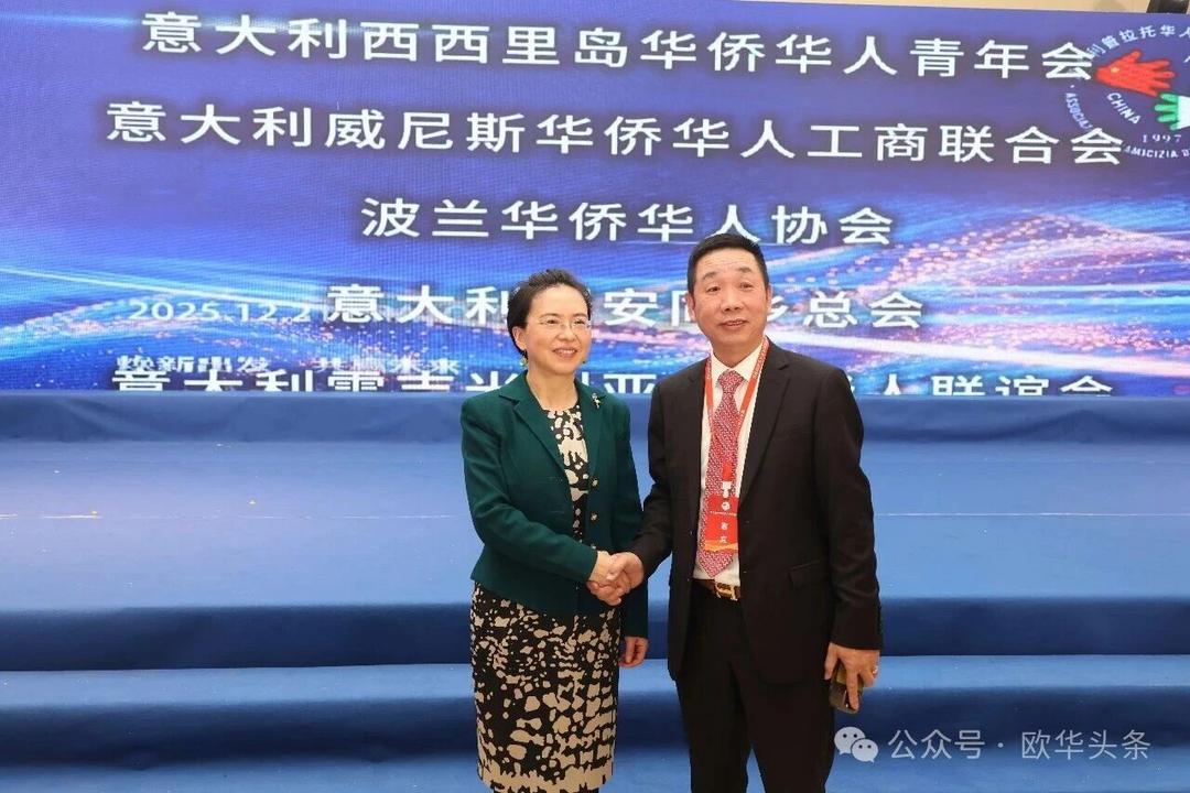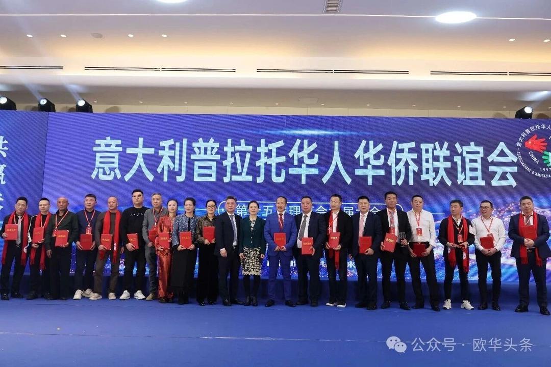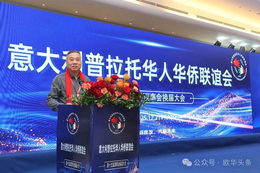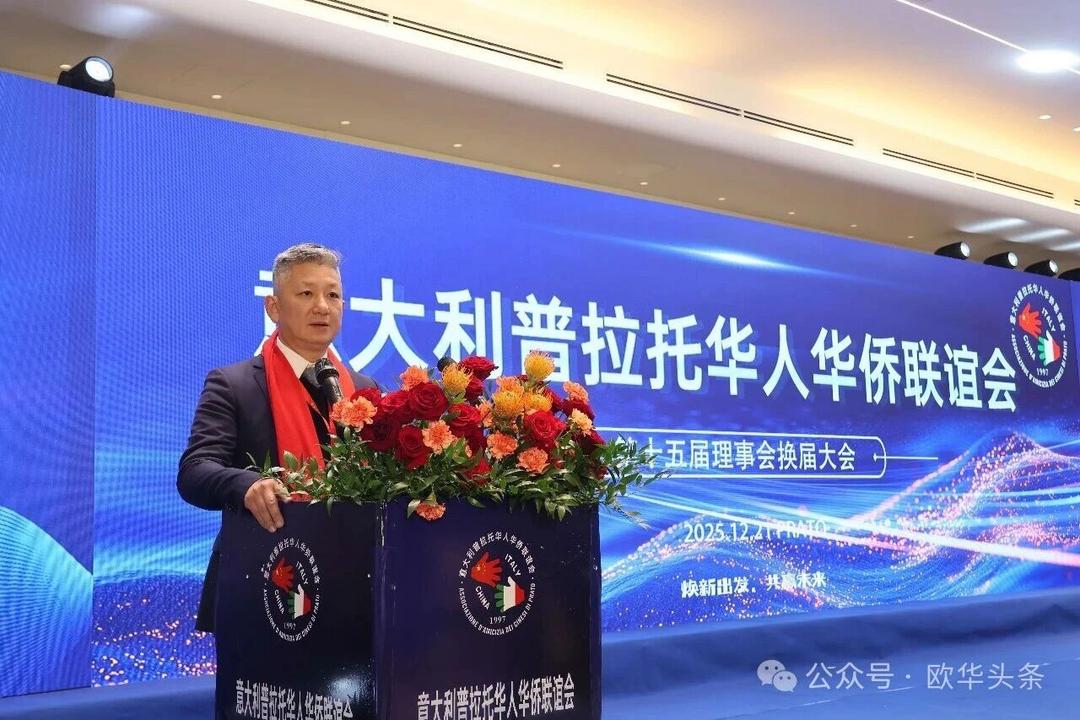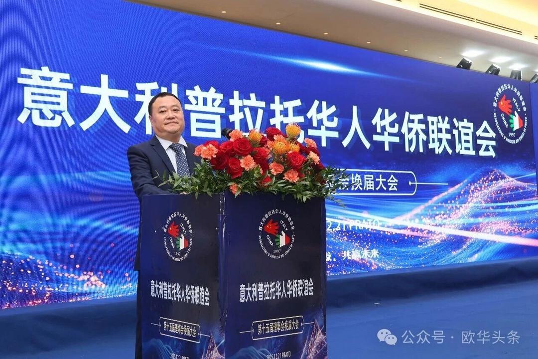 (欧华头条 陈静)2025年12月21日,意大利普拉托华人华侨联谊会第十五届换届庆典大会在当地的东方明珠大酒店隆重举行。中国驻佛罗伦萨总领事尹琦、浙江海外联谊会副会长鲍秀英、温州市侨联副主席董邦云等中意政要,中资机构代表、中意各界友好人士,以及来自意大利各地的华侨华人和普拉托华人华侨联谊会历届会长及会员代表近500人齐聚一堂,共同见证这一重要时刻。