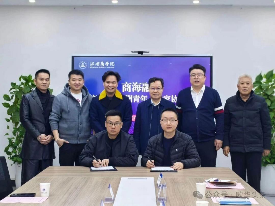 (欧华头条 陈静)2026年1月4日上午,欧洲青年企业家协会会长黄勤海,理事长詹晓孟,会务长郑瑞民,常务副会长任中辉、李丽勇一行到访温州商学院,与温州商学院管理学院举行交流座谈,并正式签署战略合作框架协议。