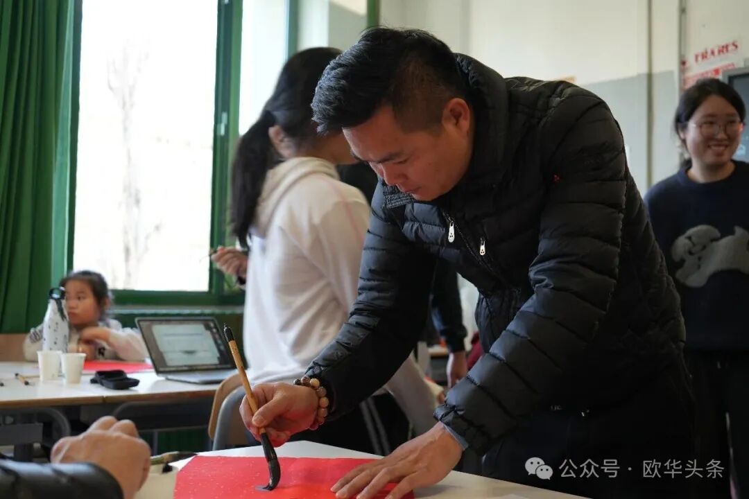 活动当天,校园内红灯笼高高悬挂,处处洋溢着喜庆的节日气息。意大利中华诗书画艺术联合会会长周建煌,意大利中华炎黄文化研究会终身名誉会长郑明武,执行会长魏仁光,监事长孙根杰,对外联络部部长王国荣等嘉宾与炎黄中文学校师生共同迎接新春的到来。炎黄中文学校执行校长王晨全程参与活动,与学校多位教师一道,积极组织和引导学生参与书法体验。