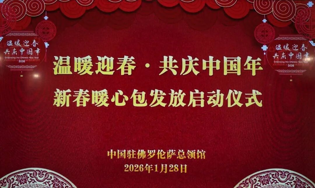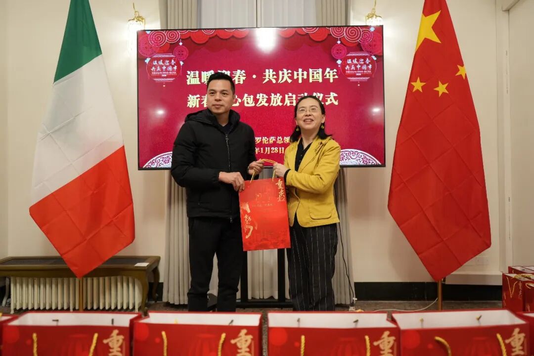 2026年1月28日下午,中国驻意大利佛罗伦萨总领馆隆重举办“温暖迎春·共庆中国年”新春暖心包发放启动仪式。来自佛罗伦萨领区各大城市的侨团代表齐聚一堂,共同迎接新春佳节,感受来自祖国的深切关怀。活动现场气氛温馨热烈,“与子同袍,新春暖心”的情谊在寒冬中愈发浓厚。据悉,此次新春暖心包由国务院侨务办公室、中国侨联、重庆市侨办、重庆市侨联与中国驻佛罗伦萨总领馆共同发放。