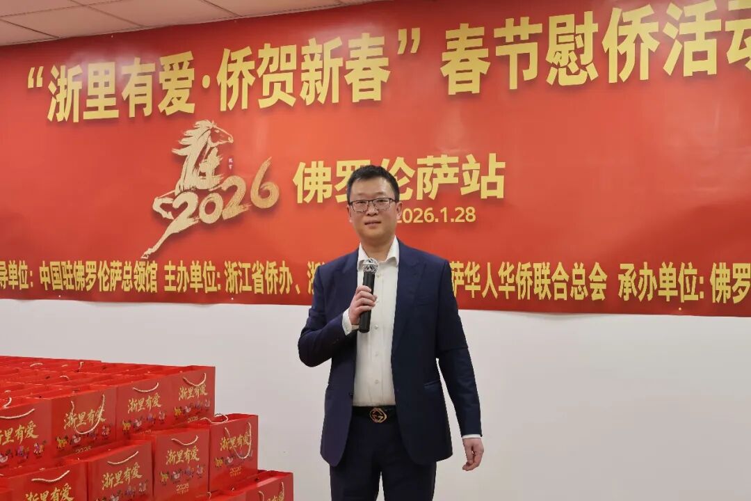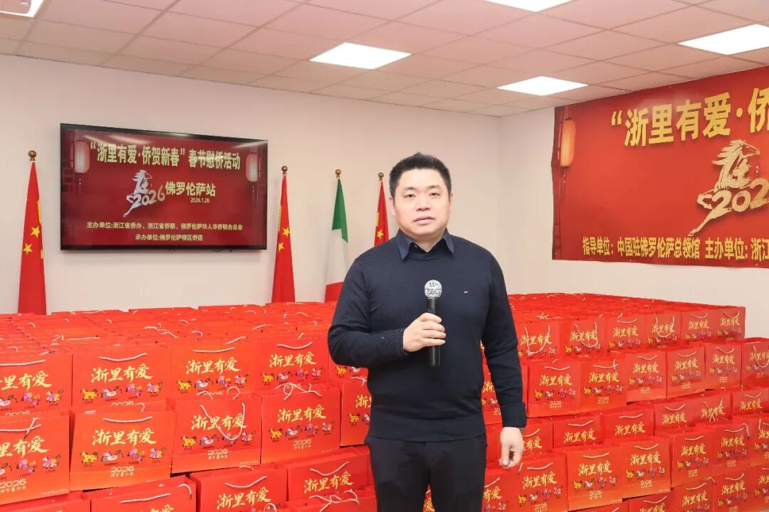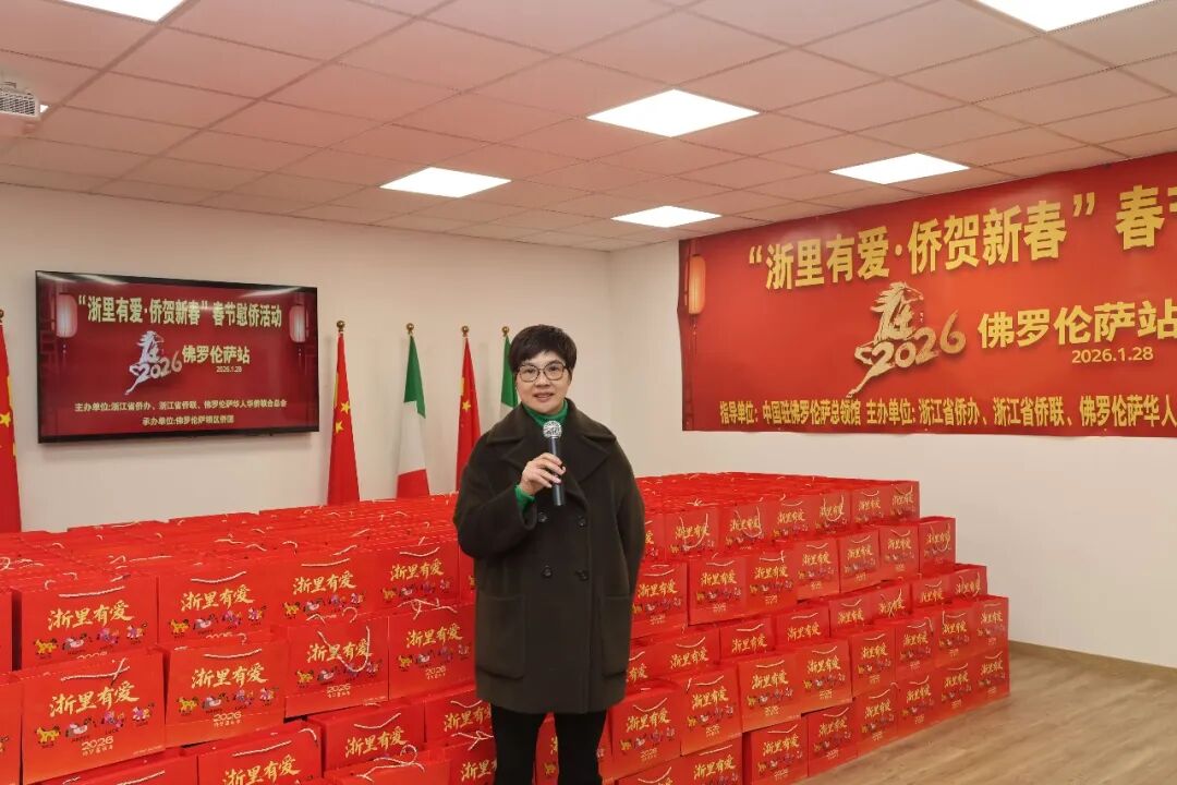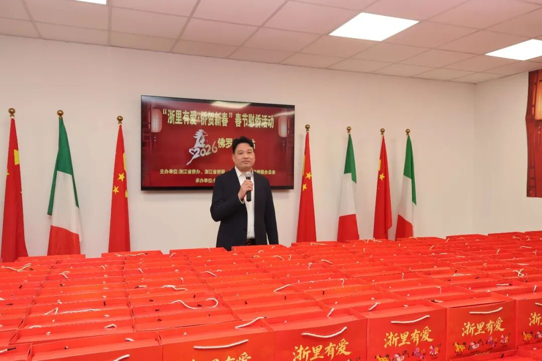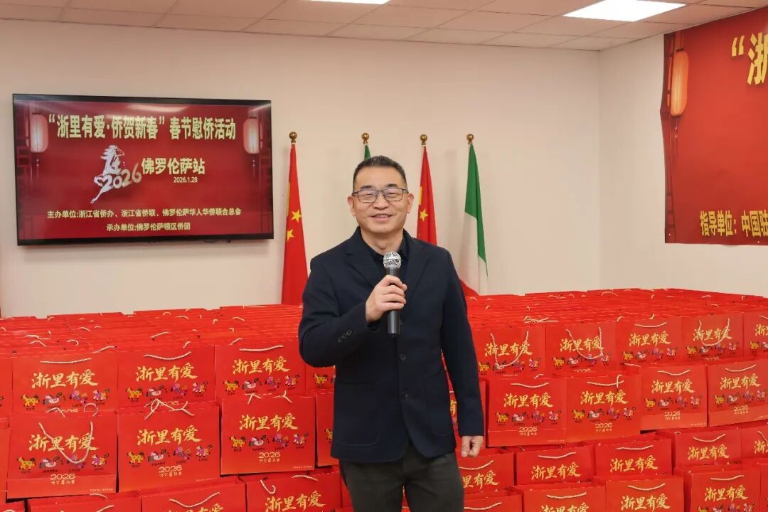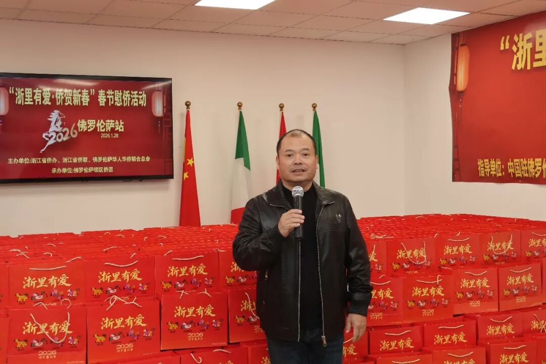 1月28日下午三时,2026年“浙里有爱·侨贺新春”春节慰侨活动佛罗伦萨站启动仪式在意大利佛罗伦萨隆重举行。此次活动在中国驻佛罗伦萨总领馆的指导下,由浙江省侨办、浙江省侨联和意大利佛罗伦萨华人华侨联合总会共同主办,佛罗伦萨领区各侨团联合承办,面向佛罗伦萨领区广大侨胞、留学生代表发放新春暖心包,把来自祖国的关怀与祝福送到海外侨胞身边。