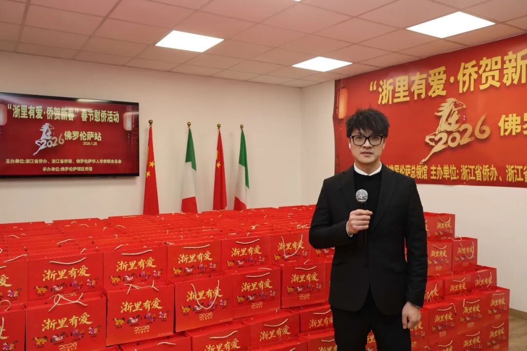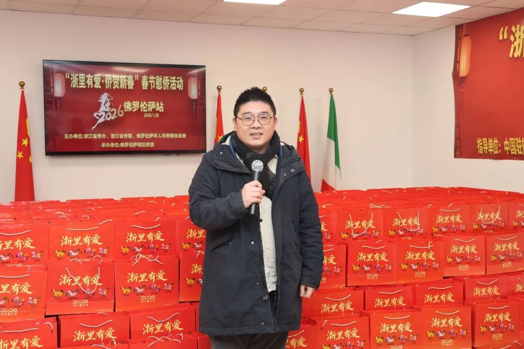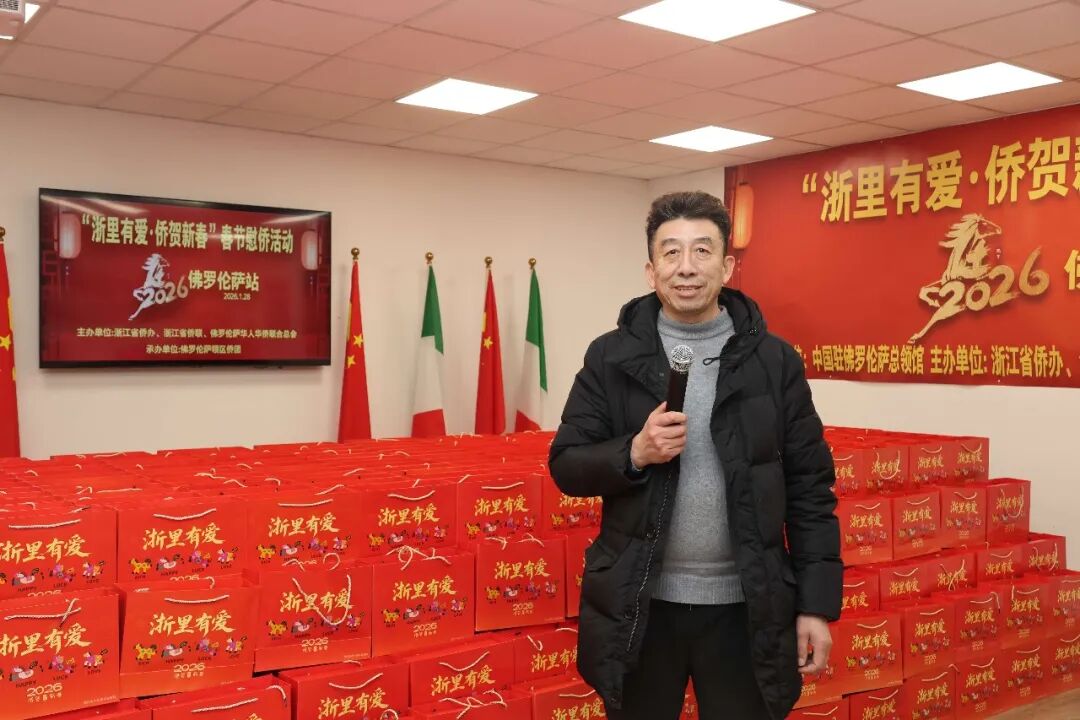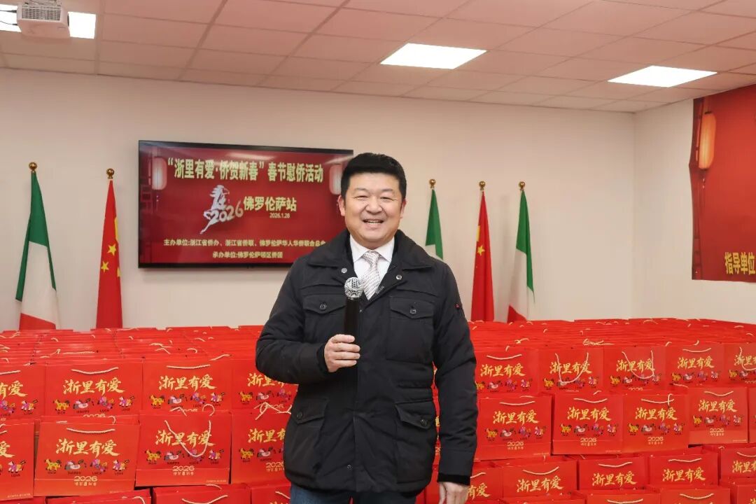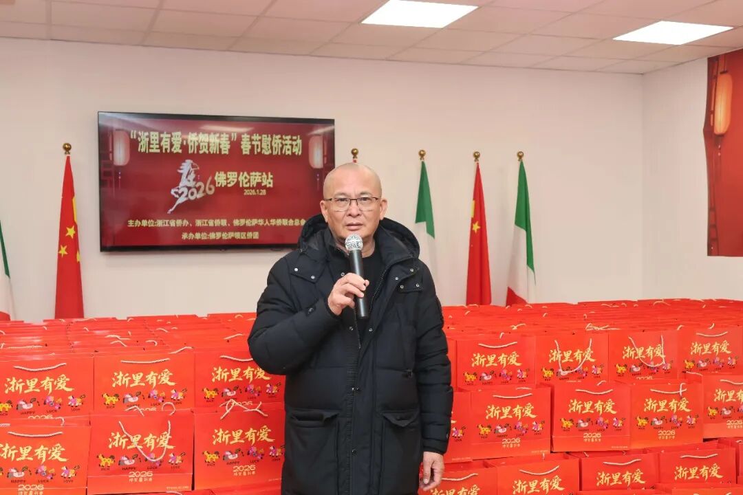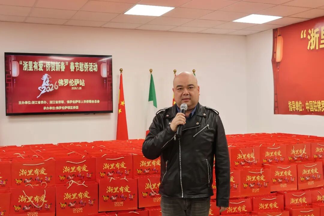 1月28日下午三时,2026年“浙里有爱·侨贺新春”春节慰侨活动佛罗伦萨站启动仪式在意大利佛罗伦萨隆重举行。此次活动在中国驻佛罗伦萨总领馆的指导下,由浙江省侨办、浙江省侨联和意大利佛罗伦萨华人华侨联合总会共同主办,佛罗伦萨领区各侨团联合承办,面向佛罗伦萨领区广大侨胞、留学生代表发放新春暖心包,把来自祖国的关怀与祝福送到海外侨胞身边。