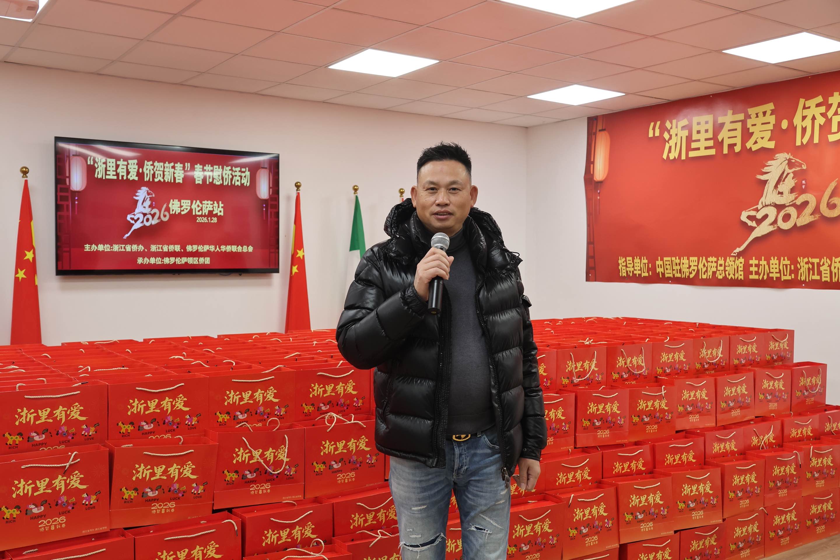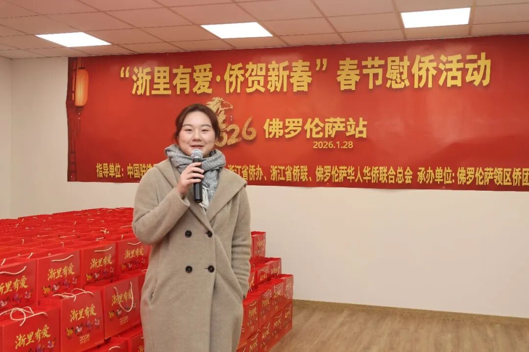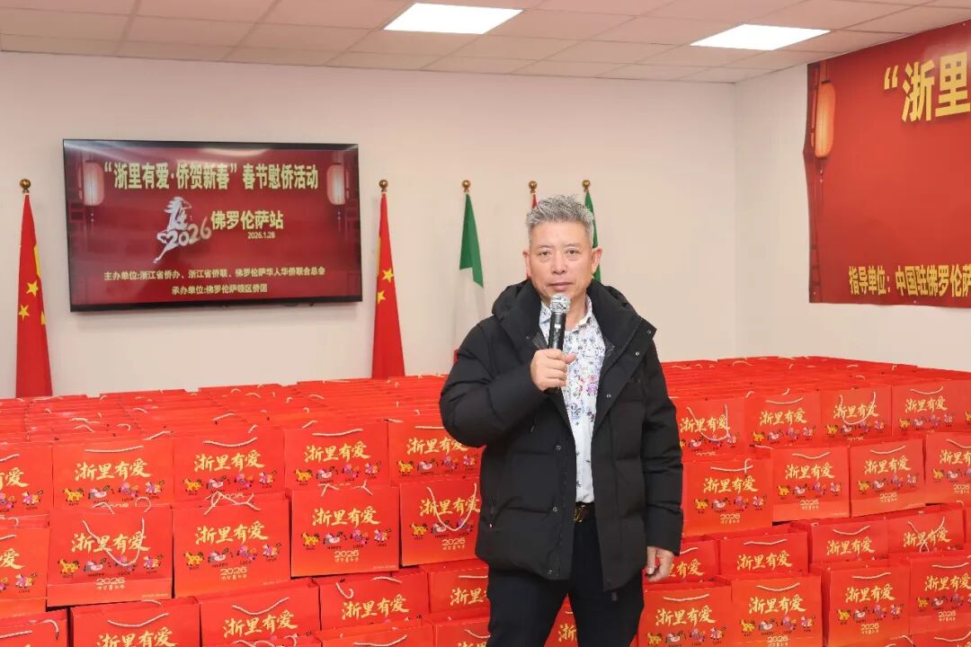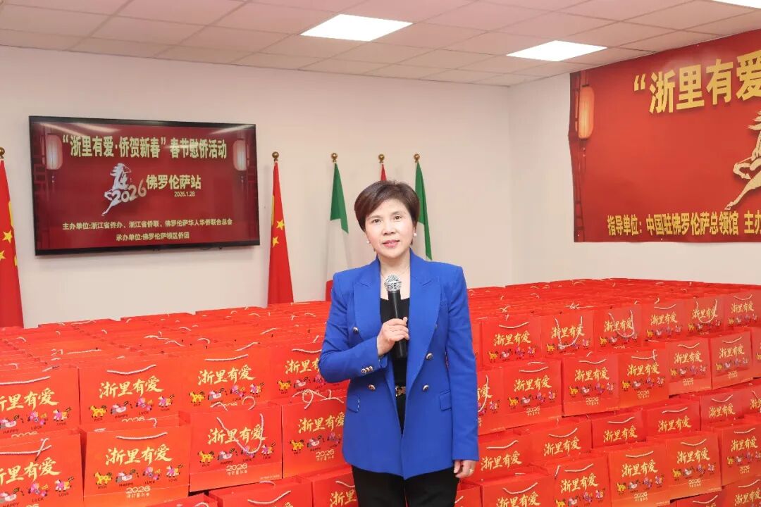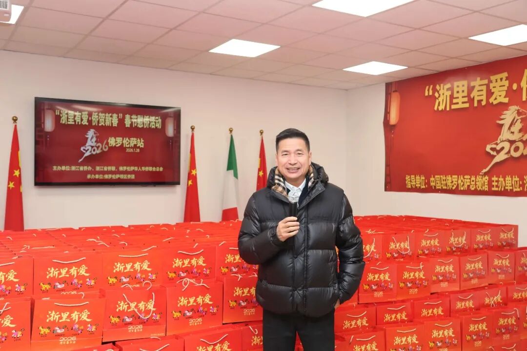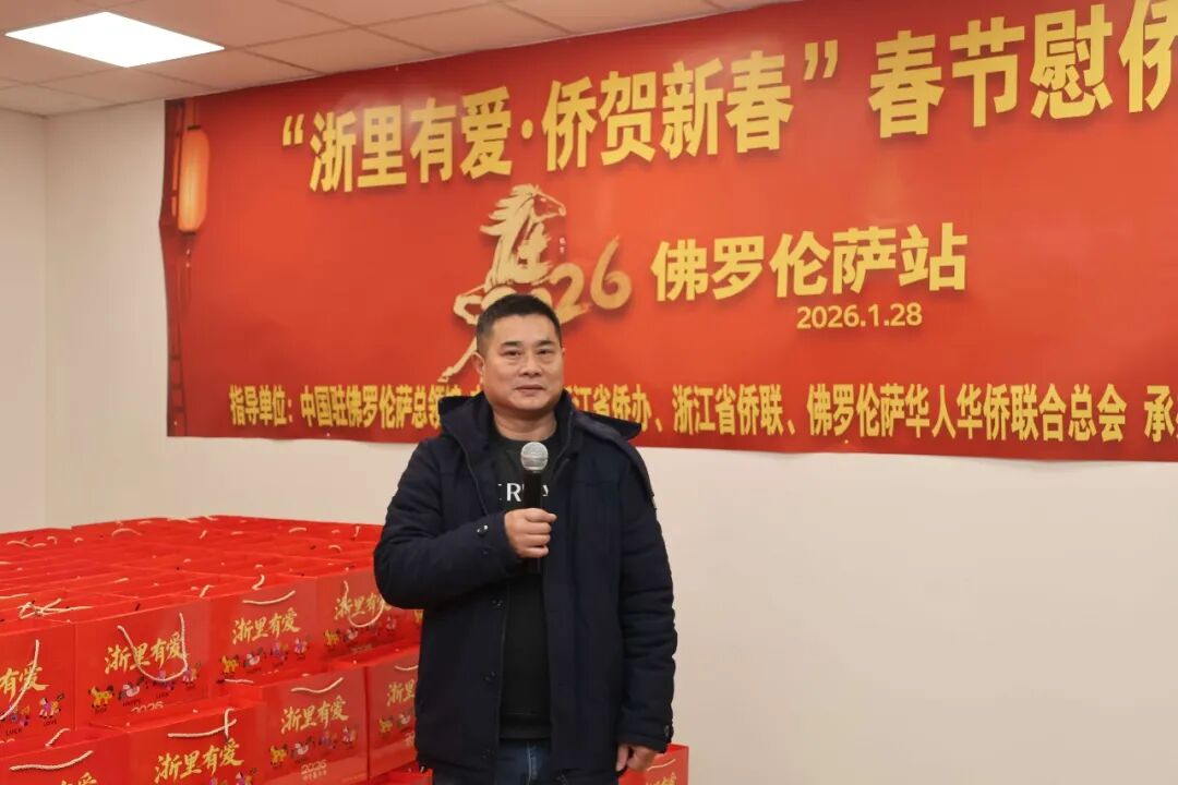 1月28日下午三时,2026年“浙里有爱·侨贺新春”春节慰侨活动佛罗伦萨站启动仪式在意大利佛罗伦萨隆重举行。此次活动在中国驻佛罗伦萨总领馆的指导下,由浙江省侨办、浙江省侨联和意大利佛罗伦萨华人华侨联合总会共同主办,佛罗伦萨领区各侨团联合承办,面向佛罗伦萨领区广大侨胞、留学生代表发放新春暖心包,把来自祖国的关怀与祝福送到海外侨胞身边。