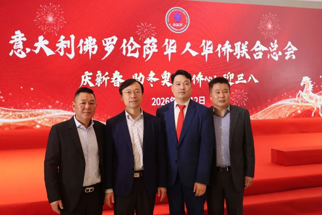 2026年2月12日晚,意大利佛罗伦萨华人华侨联合总会在普拉托市东方明珠大酒店隆重举行“庆新春 助冬奥 聚侨心 迎三八”联欢晚会。中国驻佛罗伦萨总领馆副总领事管仲奇、领侨处主任周莅淼、领事张虓,佛罗伦萨市议会主席Cosimo Guccione,托斯卡纳大区议员Francesco Casini,Campi市市长代表、国际关系局局长Concetta Pizzirusso等中意政要,与来自佛罗伦萨领区各侨团负责人、中意友好人士、留学生代表与佛罗伦萨华人华侨联合总会全体会员及家属共600余人欢聚一堂,共庆新春佳节,现场气氛喜庆热烈、温馨祥和。
