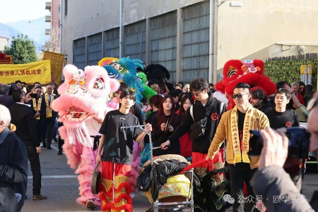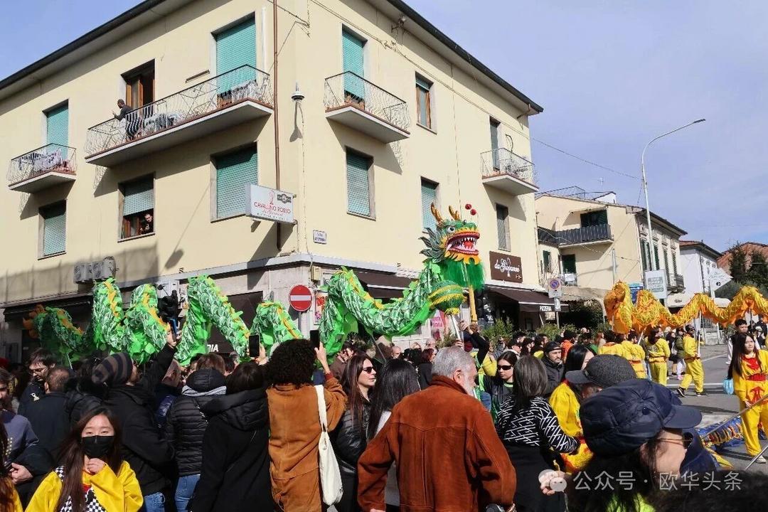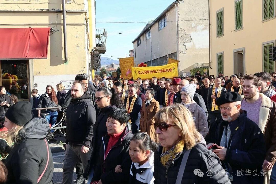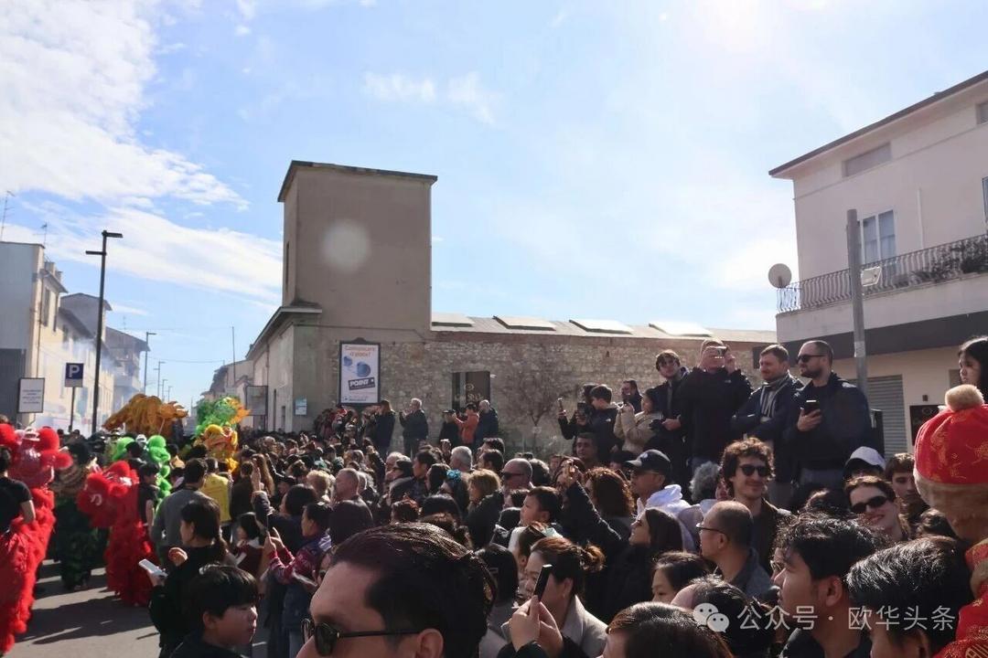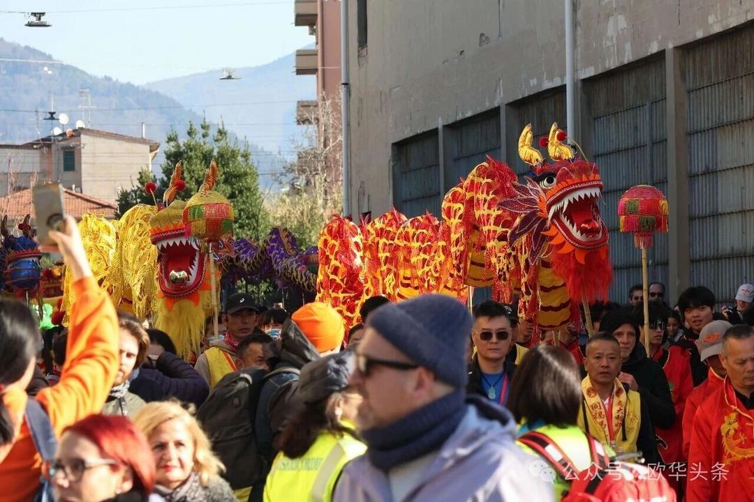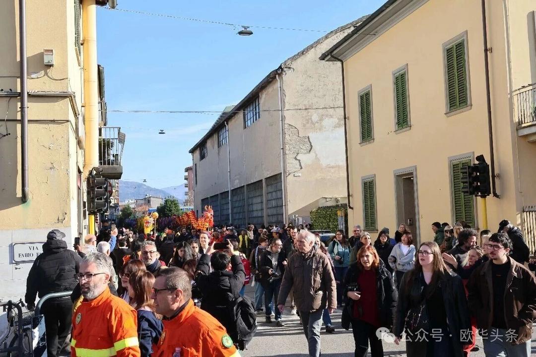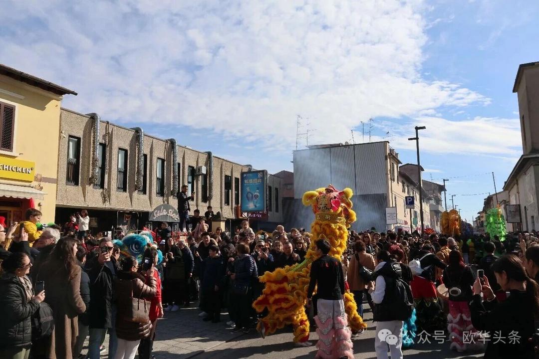 (欧华头条 陈静)2月22日,2026普拉托新春舞龙舞狮暨妈祖巡礼的第二天上午在当地华人街巡游。由意大利华侨华人佛教总会、普拉托普华寺主办的“2026新春龙狮妈祖巡礼活动”,为期两天的巡礼在普拉托Tavola和iolo工业区拉开序幕后,终于在周日迎来高潮。当天,沿街商家、中意市民纷纷涌上街头,盛情迎接这场传统文化盛宴,巡游路线两侧被人群围得水泄不通,人山人海的景象令人震撼。