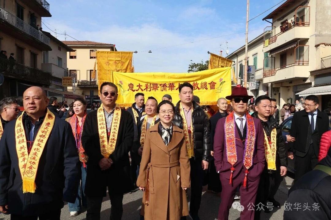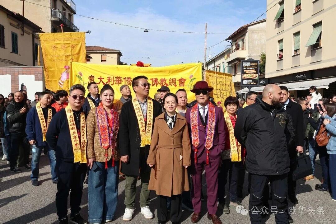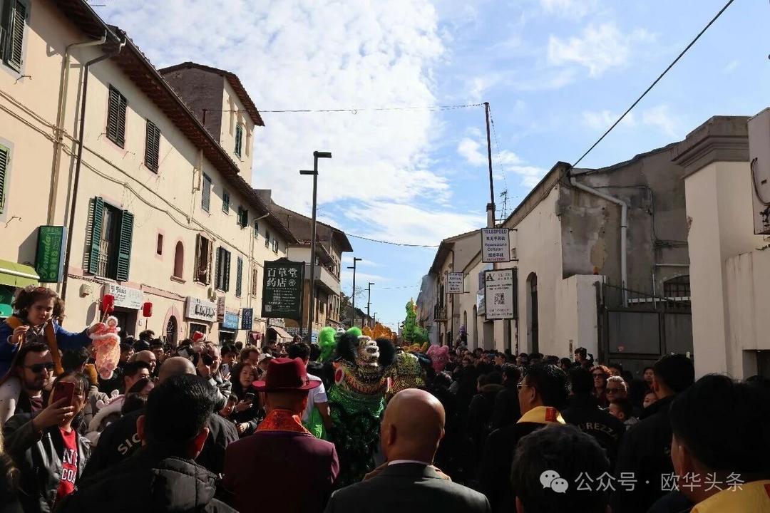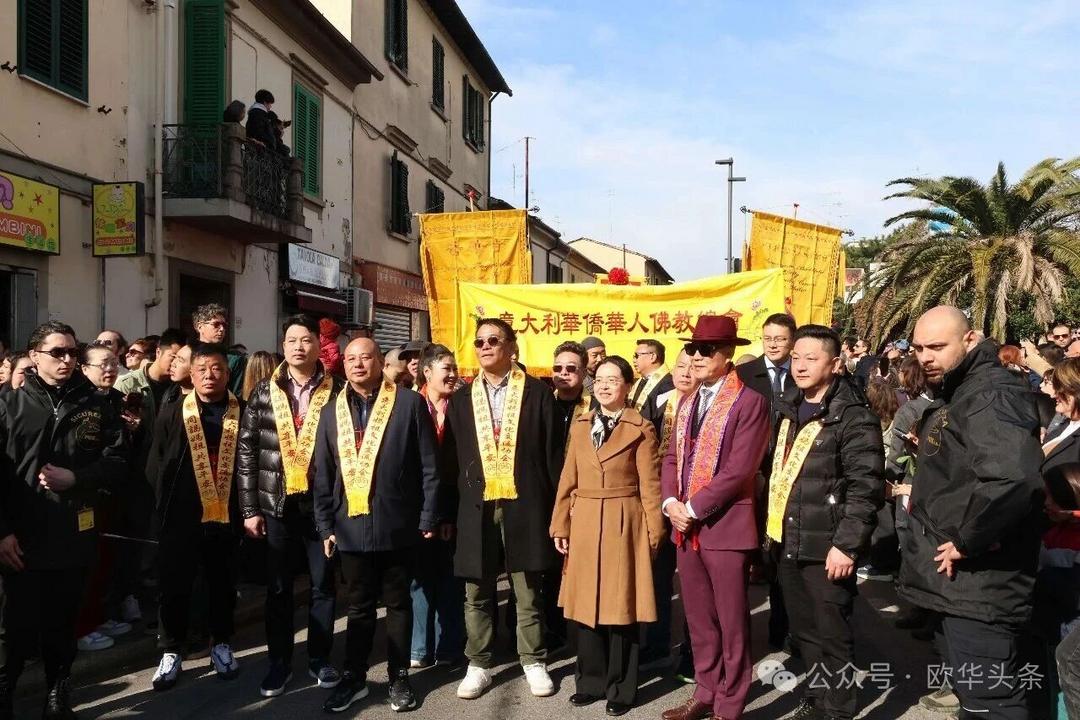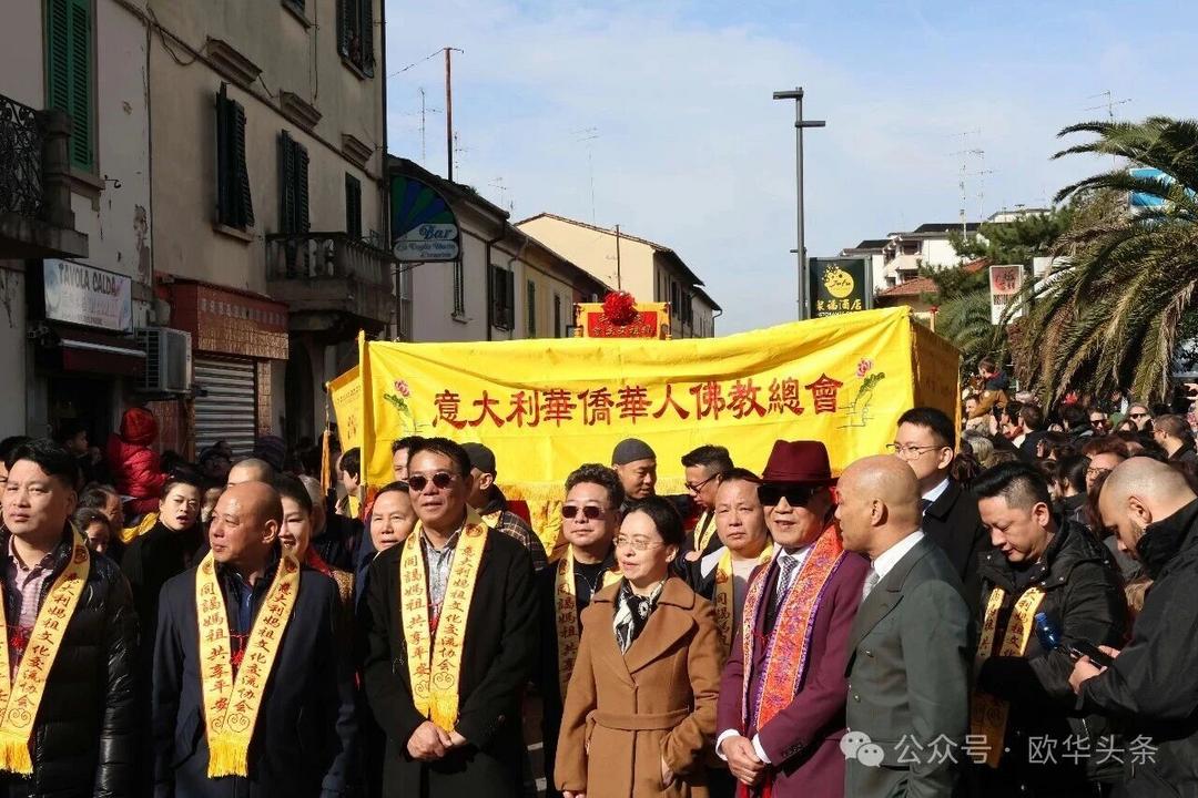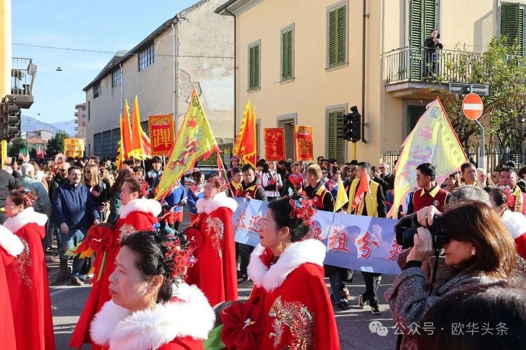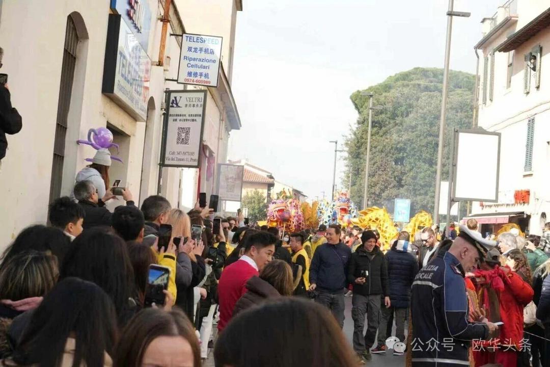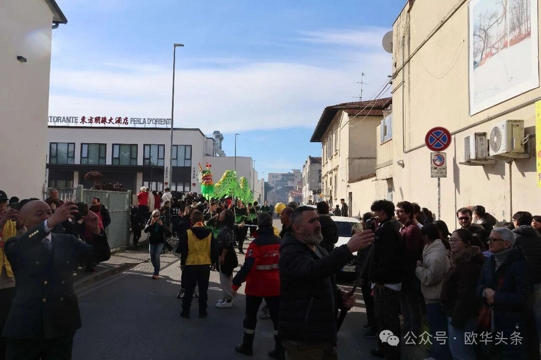 (欧华头条 陈静)2月22日,2026普拉托新春舞龙舞狮暨妈祖巡礼的第二天上午在当地华人街巡游。由意大利华侨华人佛教总会、普拉托普华寺主办的“2026新春龙狮妈祖巡礼活动”,为期两天的巡礼在普拉托Tavola和iolo工业区拉开序幕后,终于在周日迎来高潮。当天,沿街商家、中意市民纷纷涌上街头,盛情迎接这场传统文化盛宴,巡游路线两侧被人群围得水泄不通,人山人海的景象令人震撼。