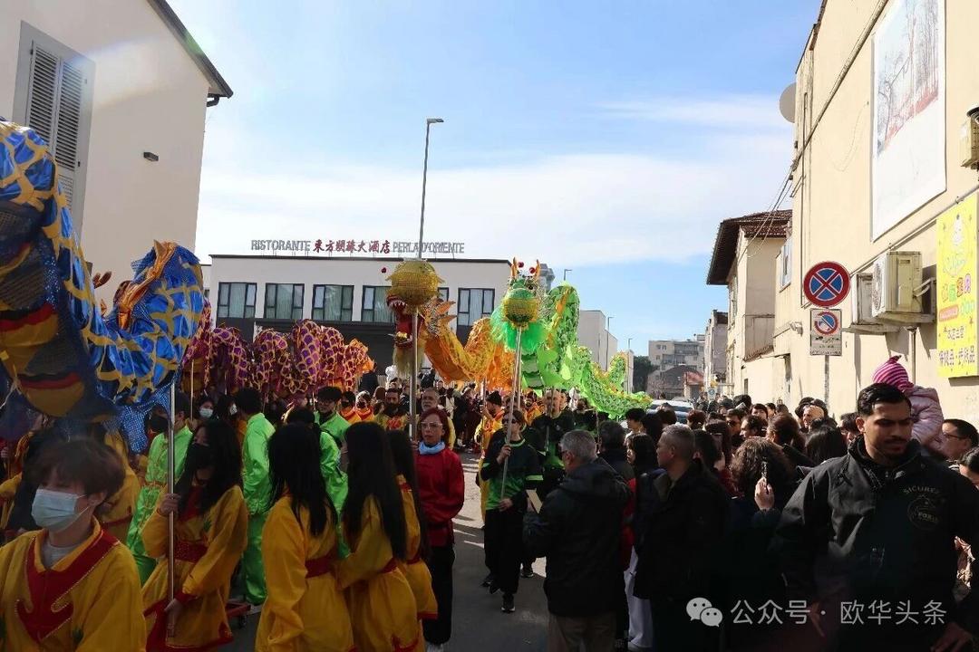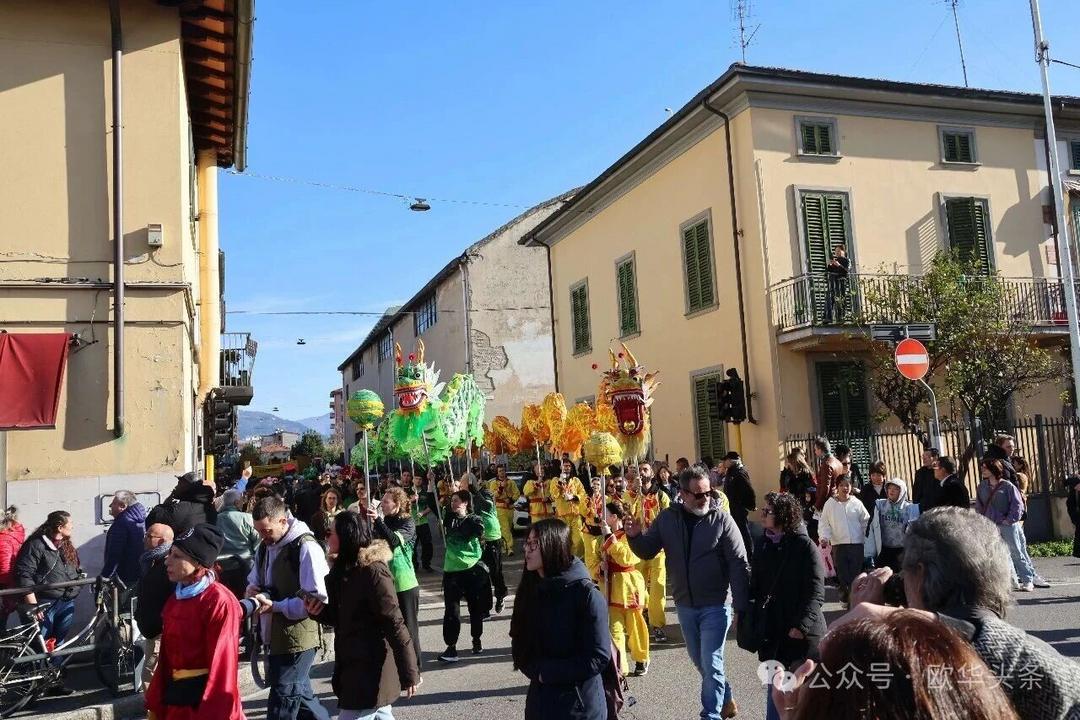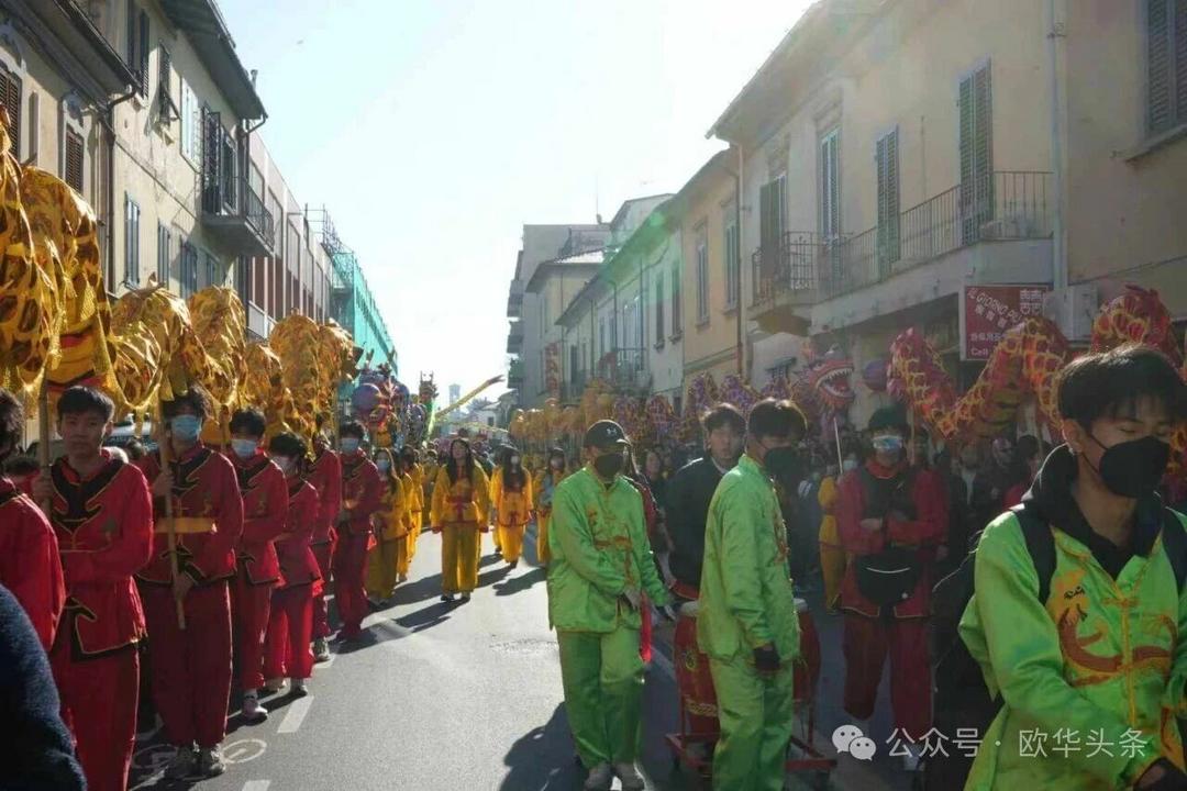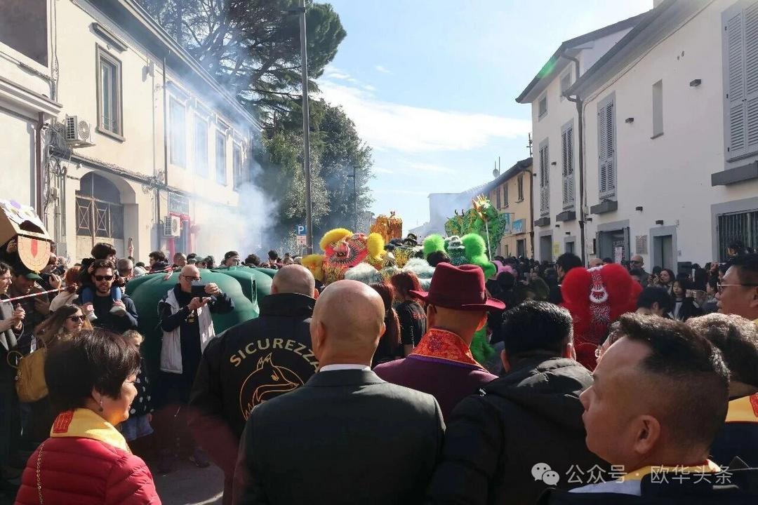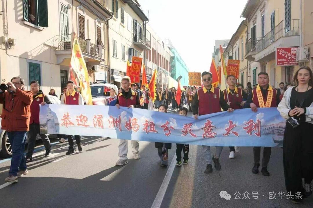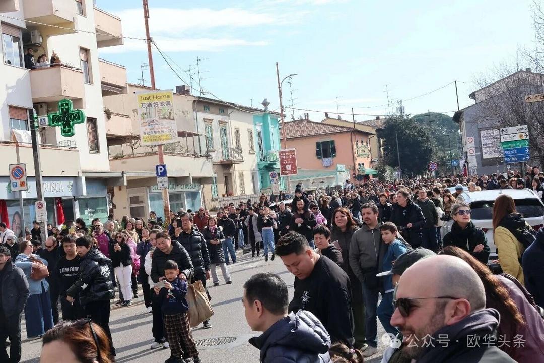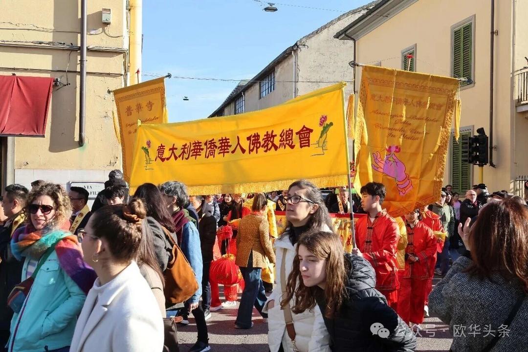 (欧华头条 陈静)2月22日,2026普拉托新春舞龙舞狮暨妈祖巡礼的第二天上午在当地华人街巡游。由意大利华侨华人佛教总会、普拉托普华寺主办的“2026新春龙狮妈祖巡礼活动”,为期两天的巡礼在普拉托Tavola和iolo工业区拉开序幕后,终于在周日迎来高潮。当天,沿街商家、中意市民纷纷涌上街头,盛情迎接这场传统文化盛宴,巡游路线两侧被人群围得水泄不通,人山人海的景象令人震撼。