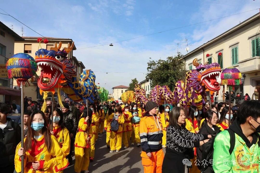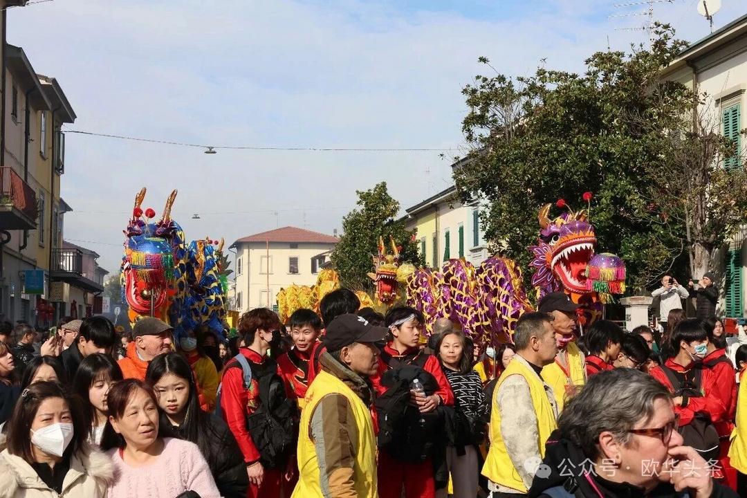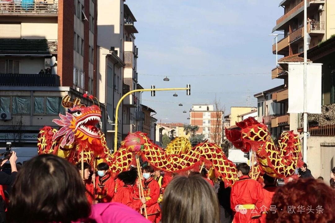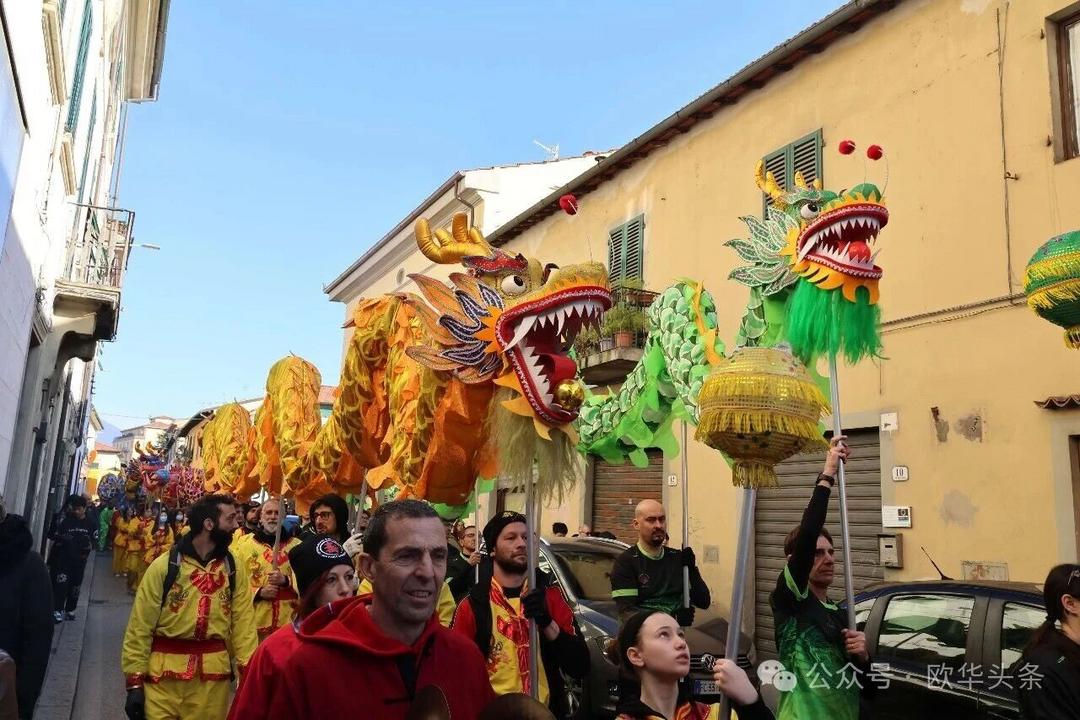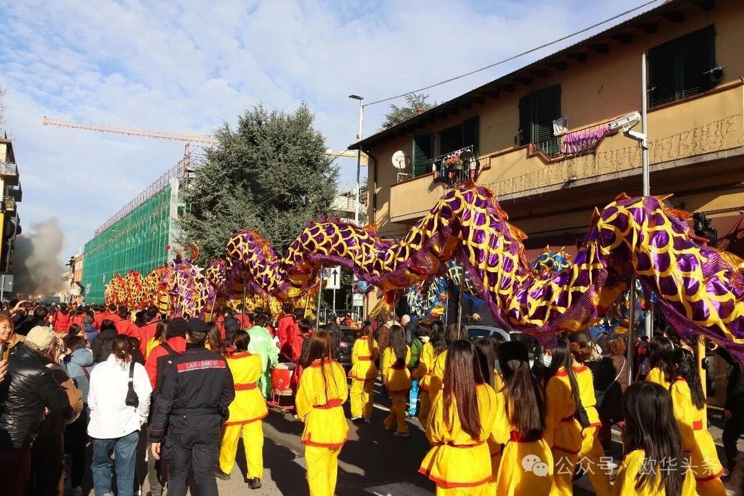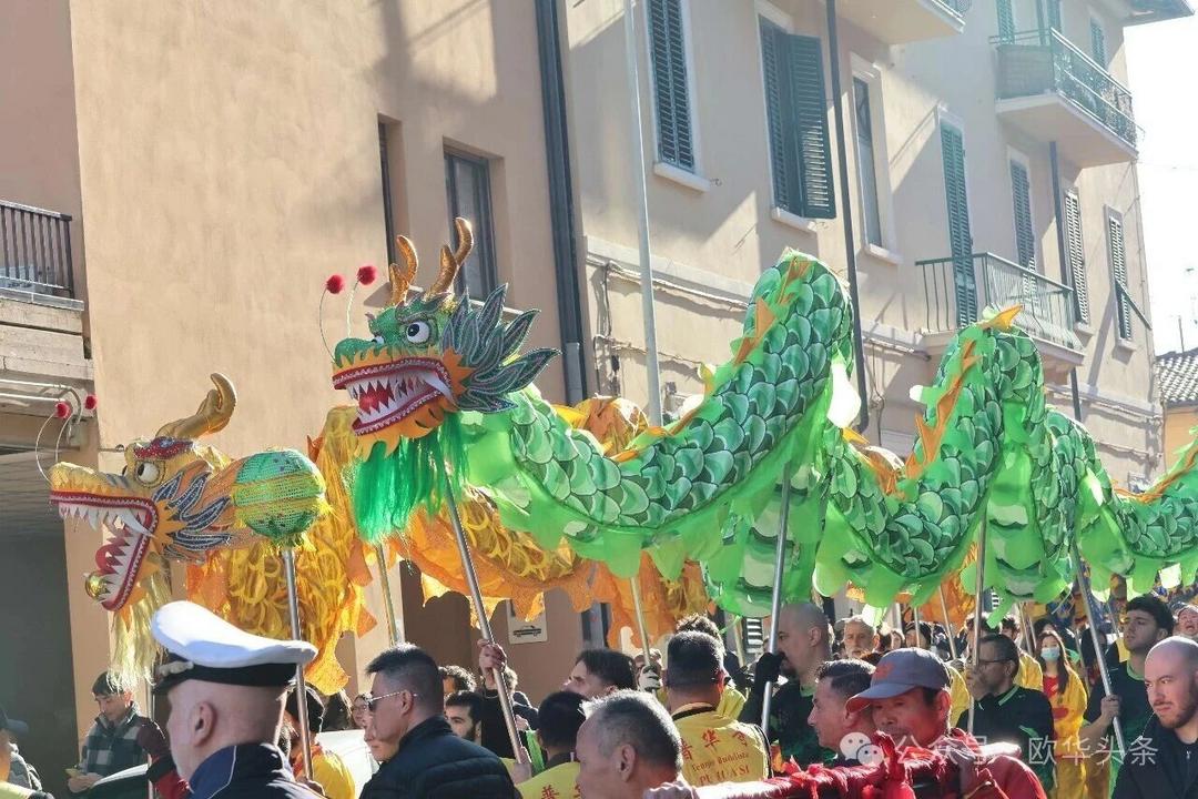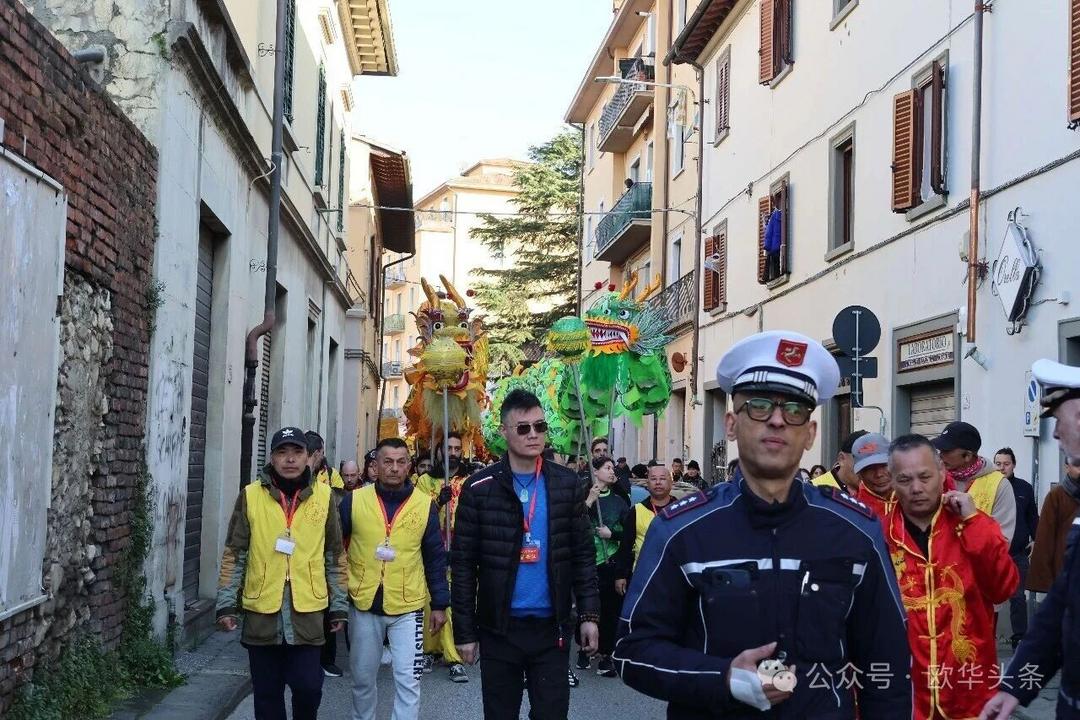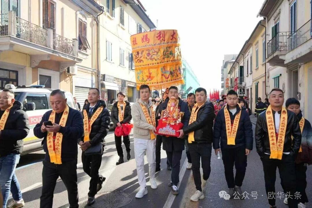(欧华头条 陈静)2月22日,2026普拉托新春舞龙舞狮暨妈祖巡礼的第二天上午在当地华人街巡游。由意大利华侨华人佛教总会、普拉托普华寺主办的“2026新春龙狮妈祖巡礼活动”,为期两天的巡礼在普拉托Tavola和iolo工业区拉开序幕后,终于在周日迎来高潮。当天,沿街商家、中意市民纷纷涌上街头,盛情迎接这场传统文化盛宴,巡游路线两侧被人群围得水泄不通,人山人海的景象令人震撼。