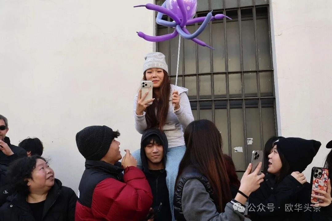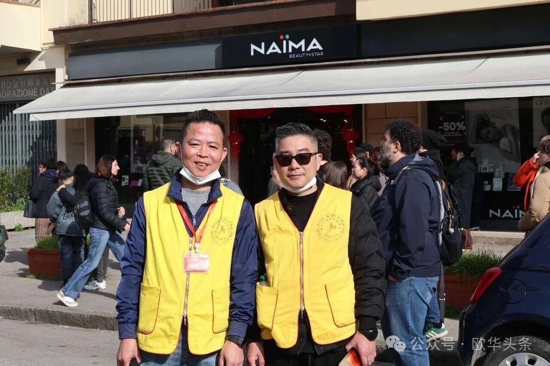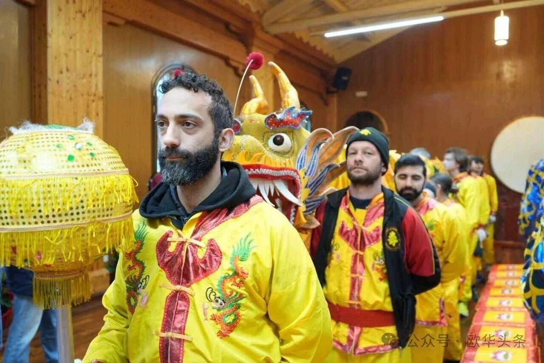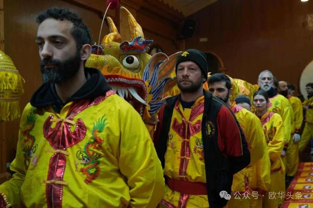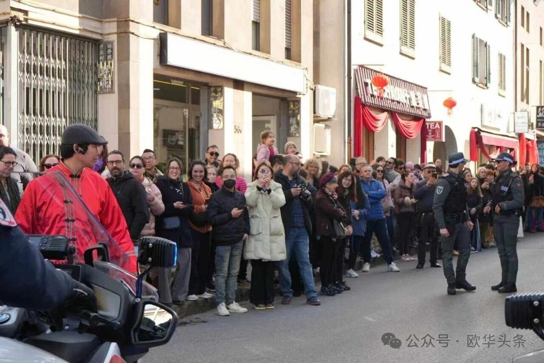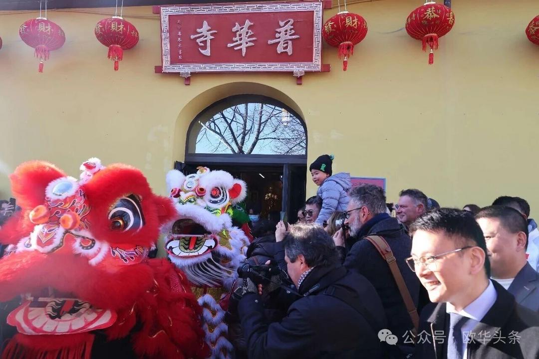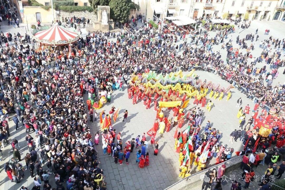 一路走来,沿途的商家纷纷加入庆祝行列,悬挂红灯笼、张贴福字,送出小礼物,向巡游队伍致意祝福。现场不仅有华人居民热情参与,当地意大利市民也被传统的龙狮文化深深吸引,大家掌声、喝彩声此起彼伏,将街区氛围推向高潮。