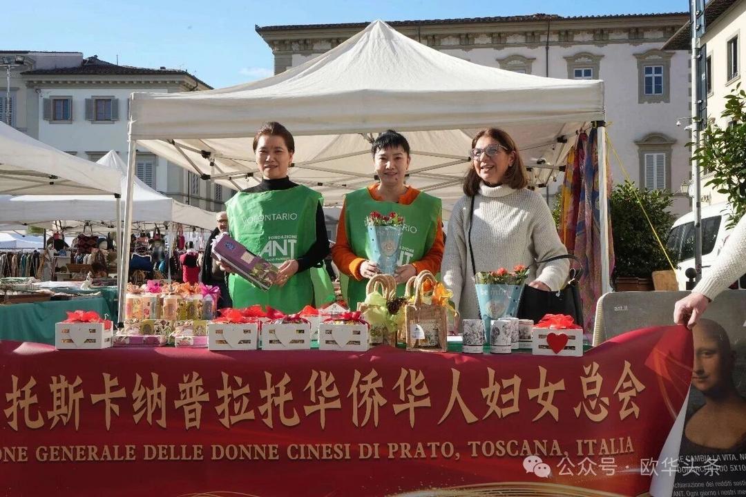 义卖活动开始前几天,意大利托斯卡纳普拉托华侨华人妇女总会的姐妹们便积极筹备,捐赠了多批爱心物资,为活动顺利开展贡献力量。活动当天,她们来到现场踊跃参与义卖,以实际行动支持公益事业。