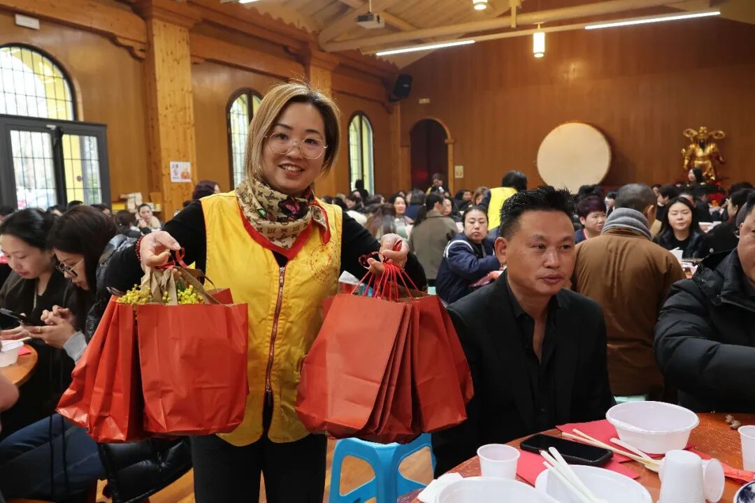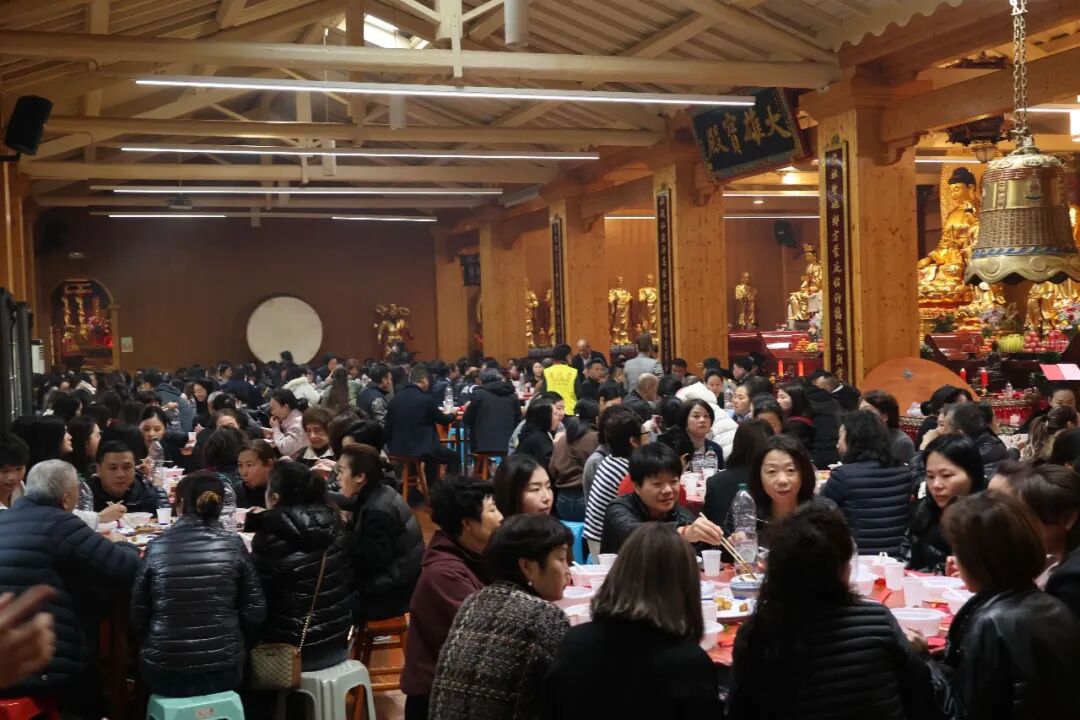 上午11点,活动进入温馨的素食共享环节,大家围坐一堂,在清香素雅的佳肴中畅叙乡情,共度温暖祥和的节日时光。